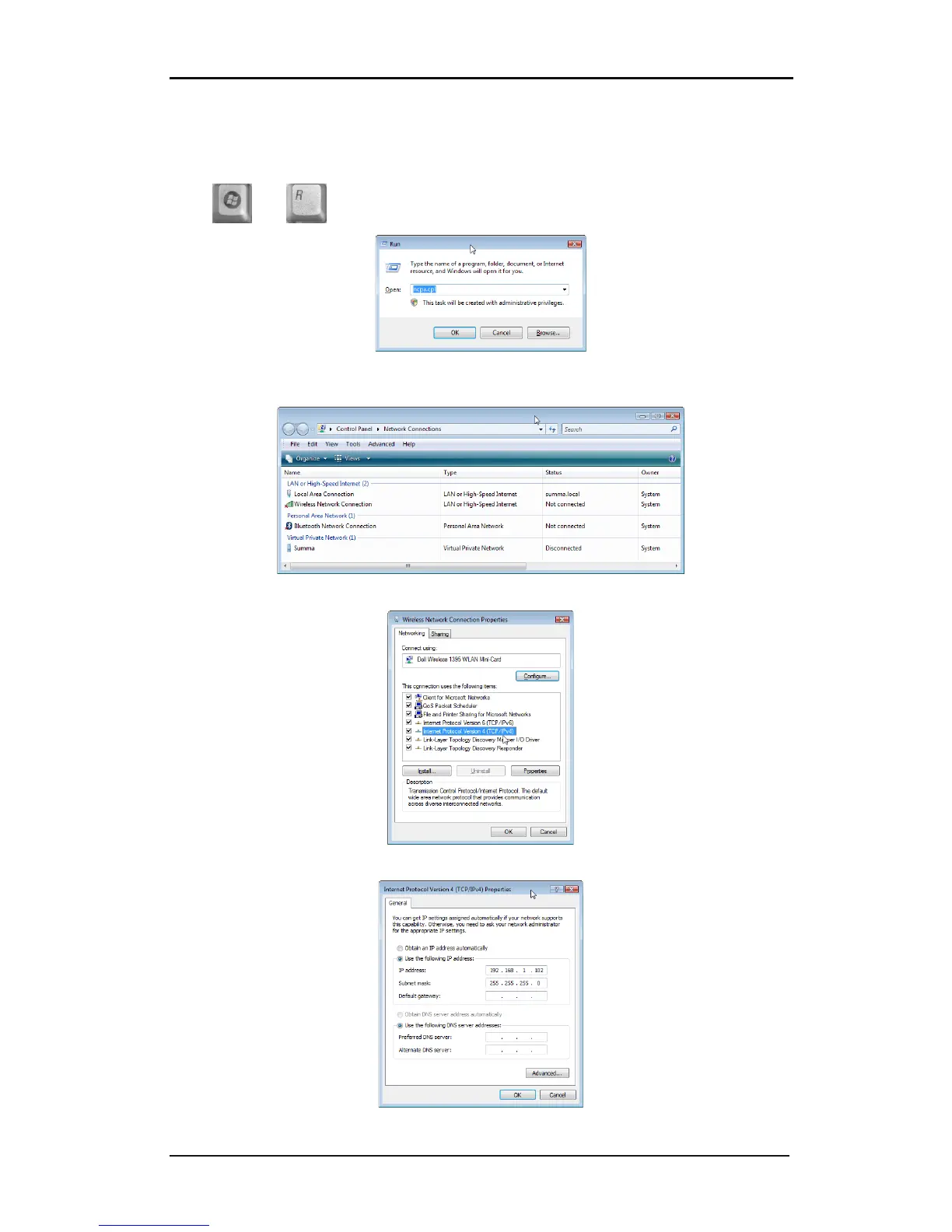 Press and . A windows will open fill in ncpa.cpl and click OK.