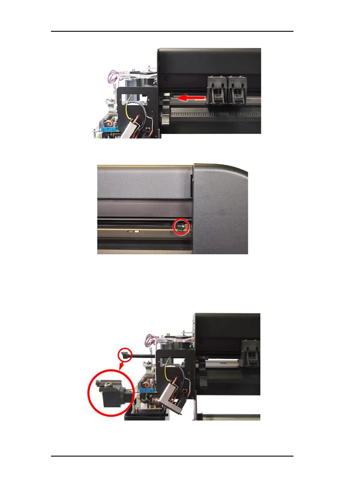 Slide the pinch roller bar out of the machine to remove the old cam handle.