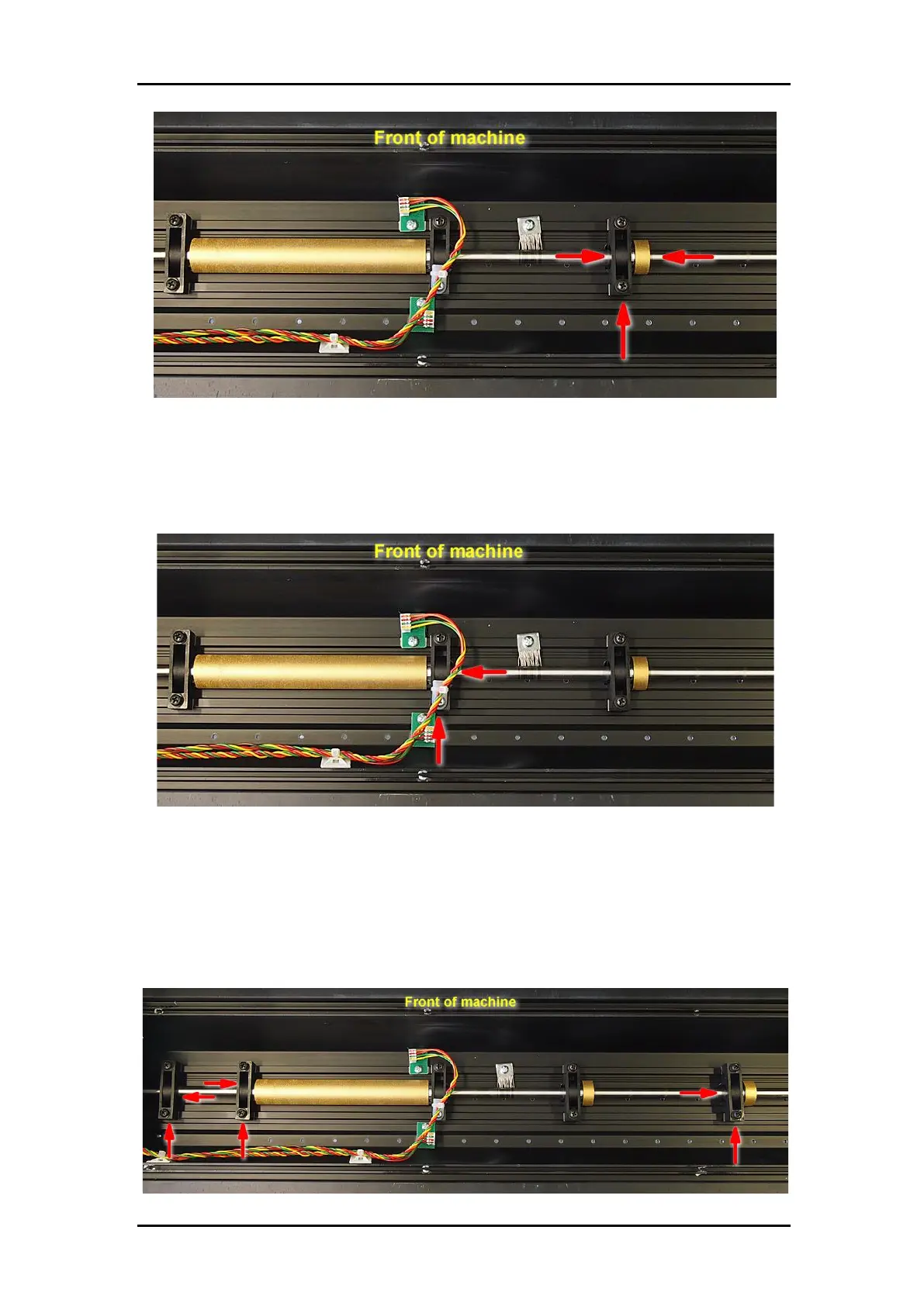 Now firmly tighten the screws of the other bearing blocks. Make sure they are