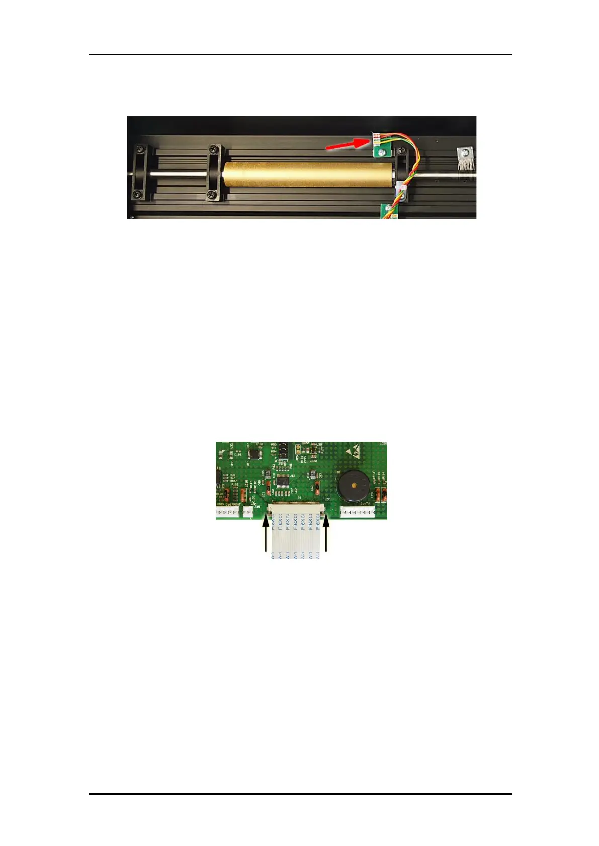 While sliding the right end cover back over the main board, reconnect the flat cable