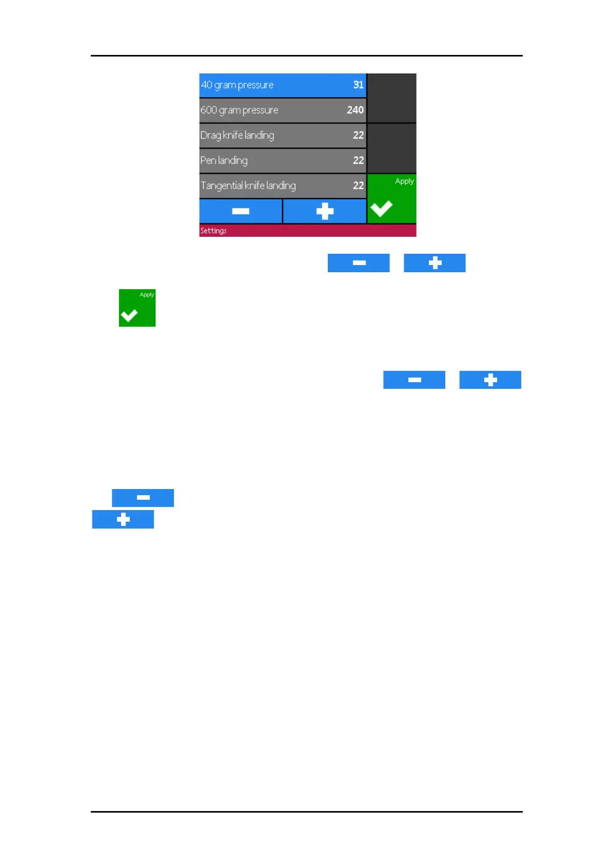 Use to lower the landing value until the tool is in the “up” position. Then use
