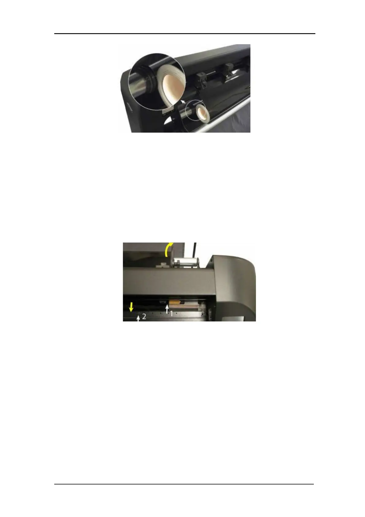 7. Make sure that the media follows a straight path from the roll of material. To accomplish