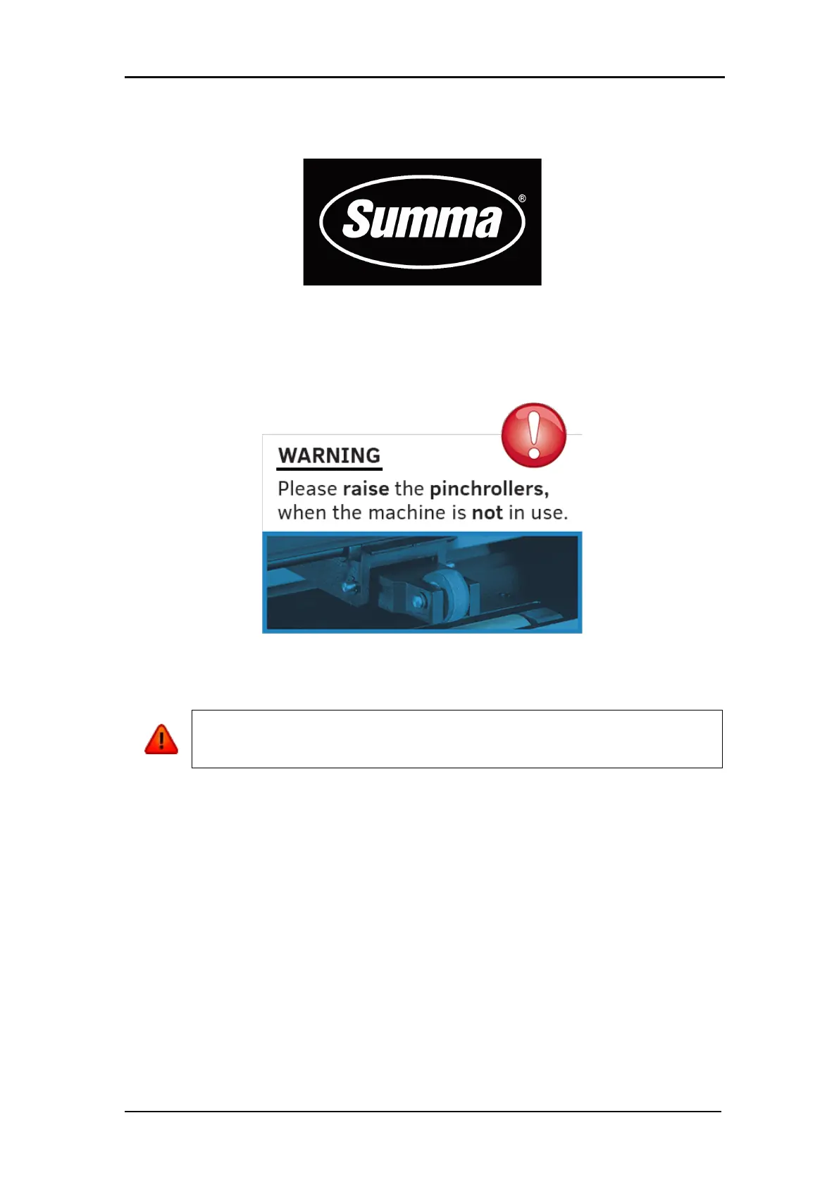 cutter is not busy and the pinch rollers are down, then following warning will appear on screen.