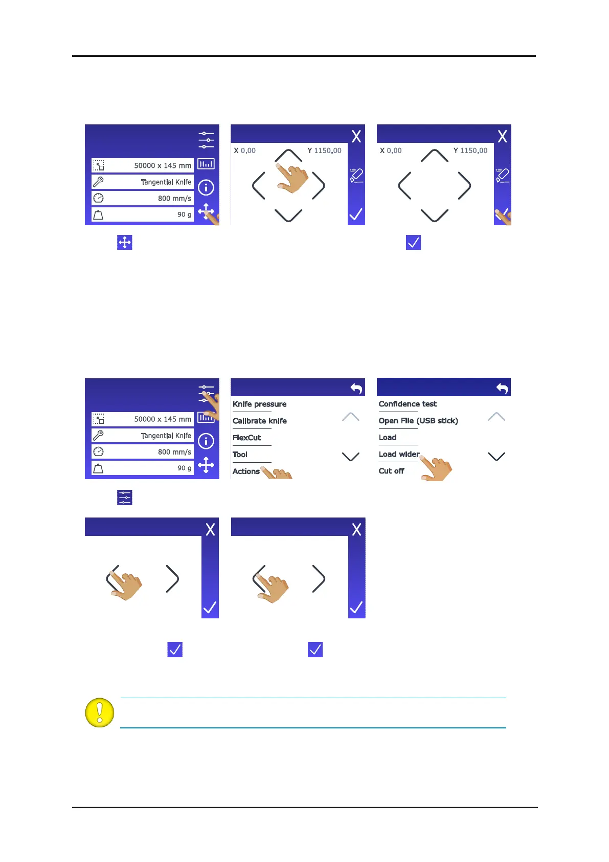 The function Load wider makes it possible to redefine the limits of the Y-axis so that the cutter can
