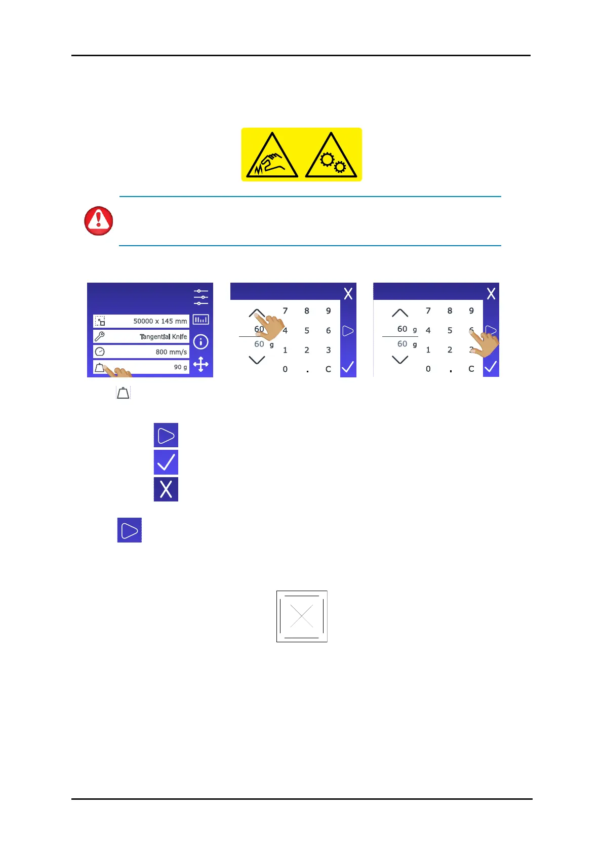 Once is pressed, the current knife pressure is automatically set to the new value and the