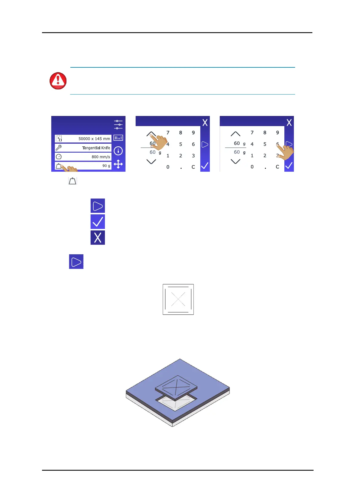 Once is pressed, the current knife pressure is automatically set to the new value and the