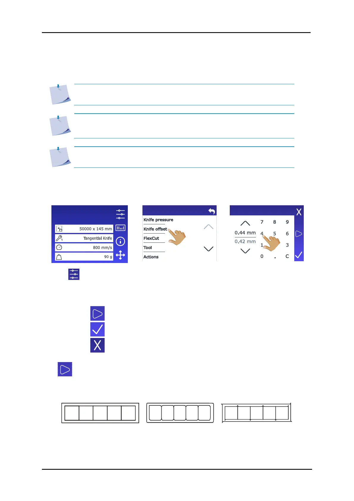2. Tap to confirm the chosen knife offset.
