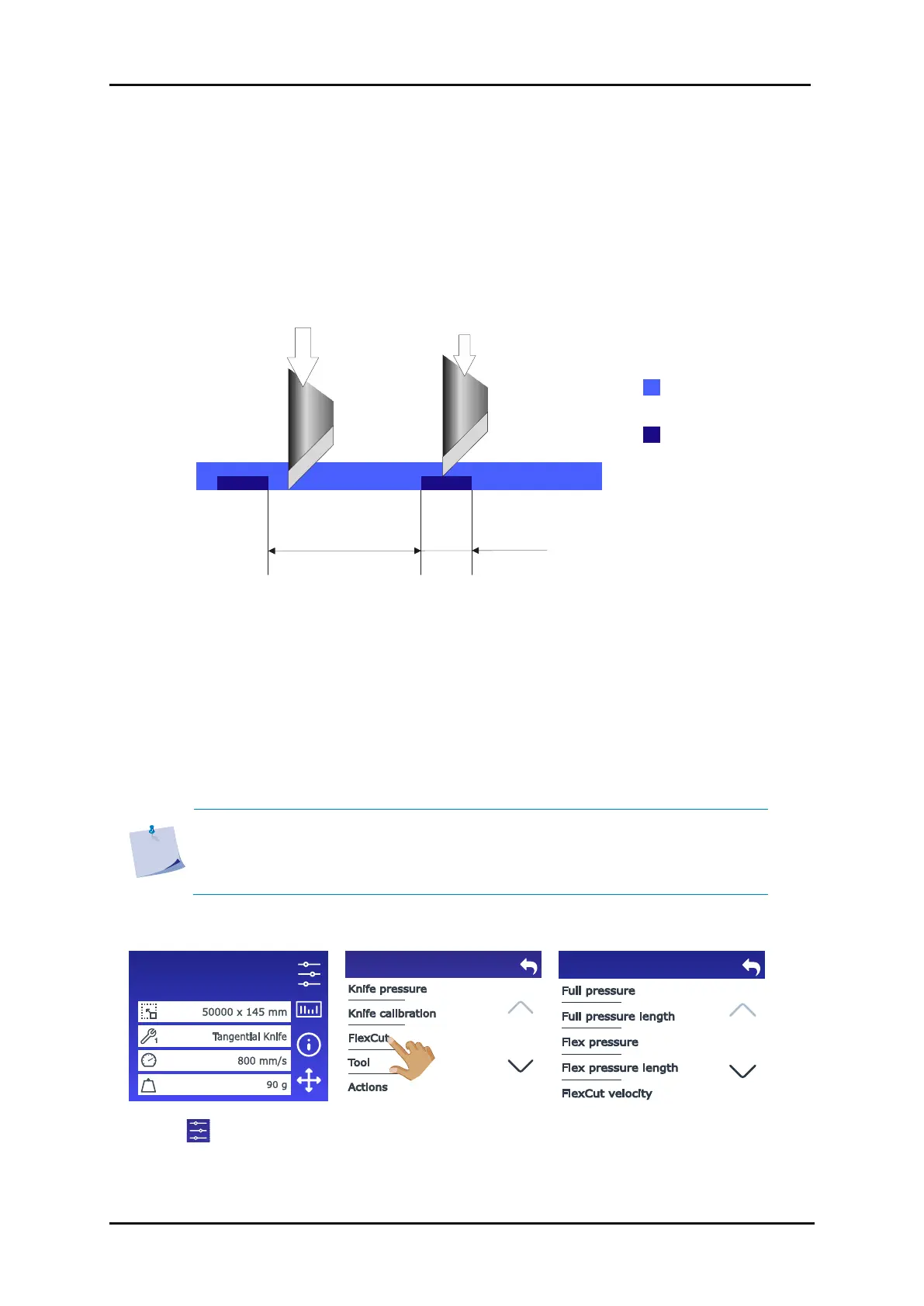 pressure, 80 g and 1 mm for FlexCut pressure, and auto speed. Section 2.7.2.3