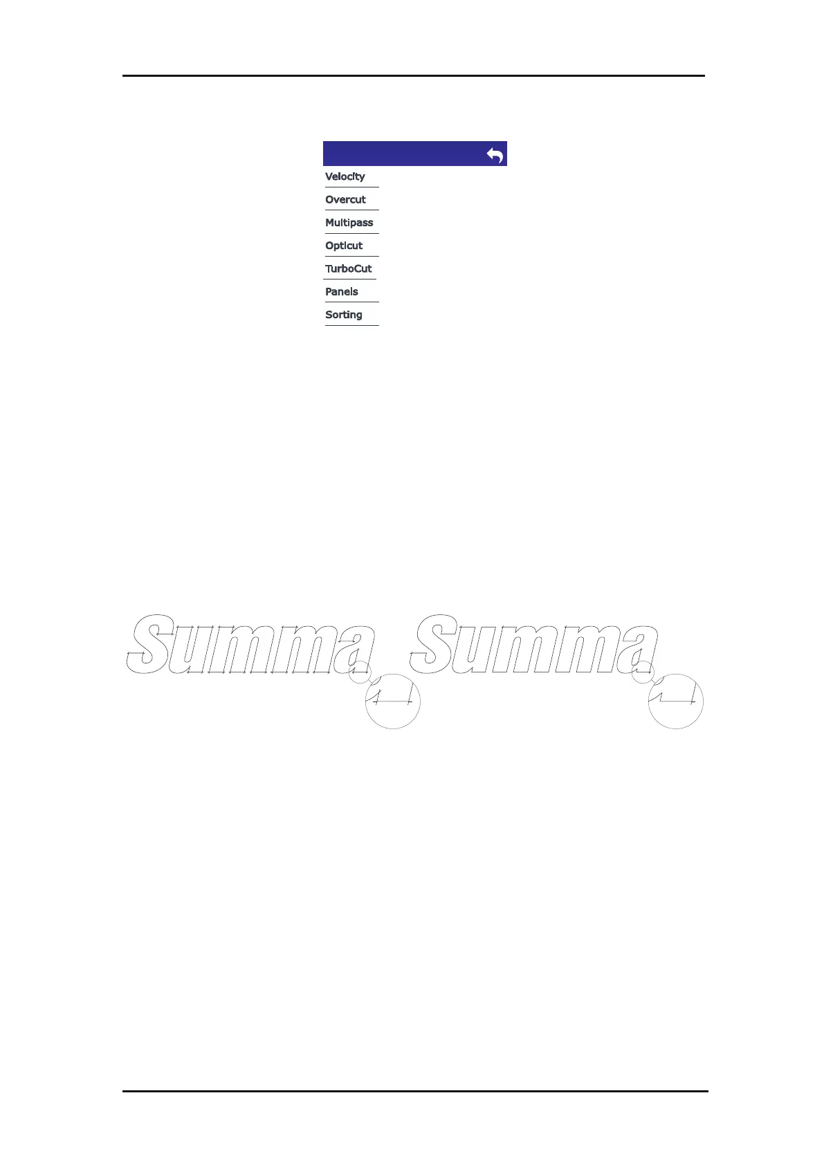 This submenu allows increasing the cutting quality in case the knife is worn out or not