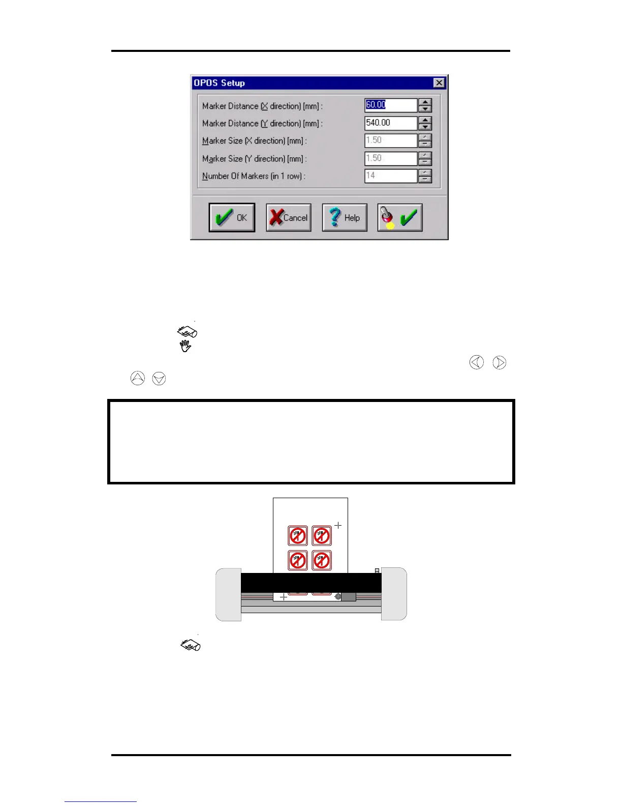 • Position the knife tip exactly above the origin-marker using the ,