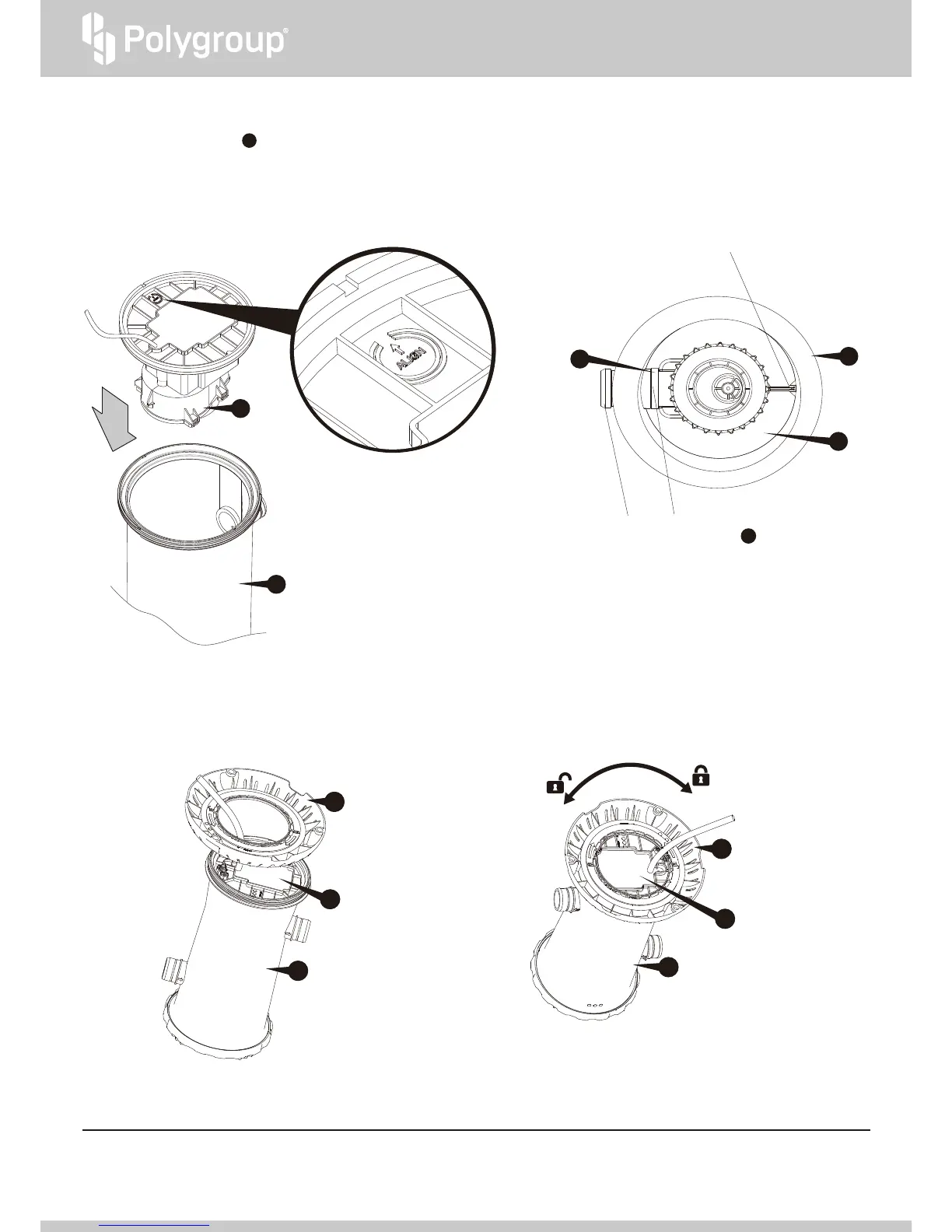 alinee con la muesca de la Caja (solo visible desde la parte inferior); de lo contrario, la base de la Bomba puede presentar fugas aún si está bloqueada en su lugar.
