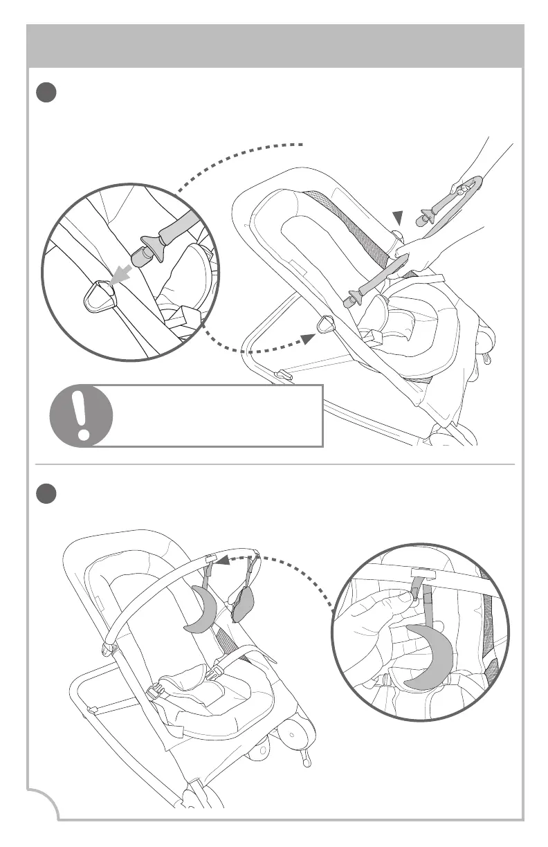boucles et les attacher à la barre de jouets tel qu'illustré.