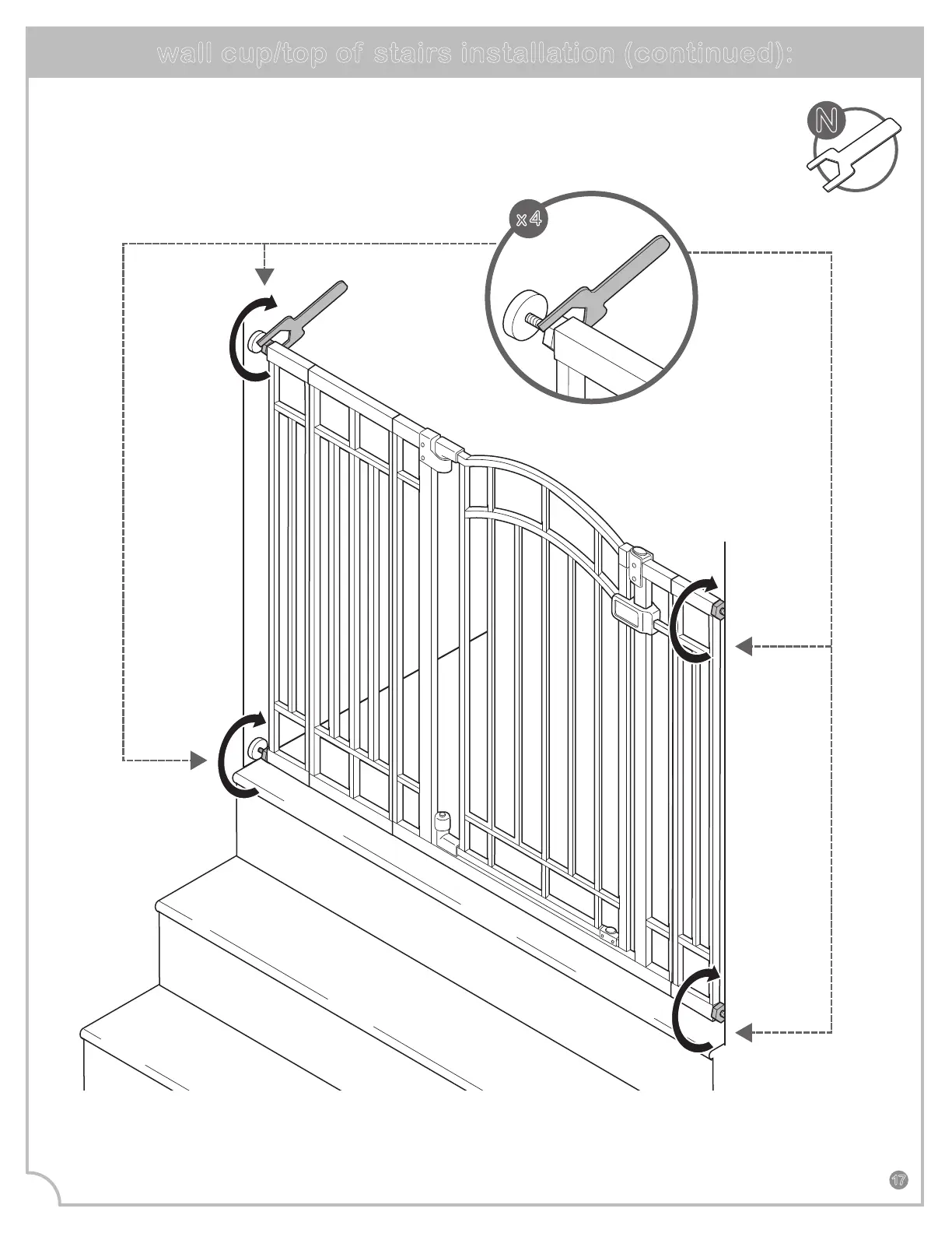 wall cup/top of stairs installation (continued):