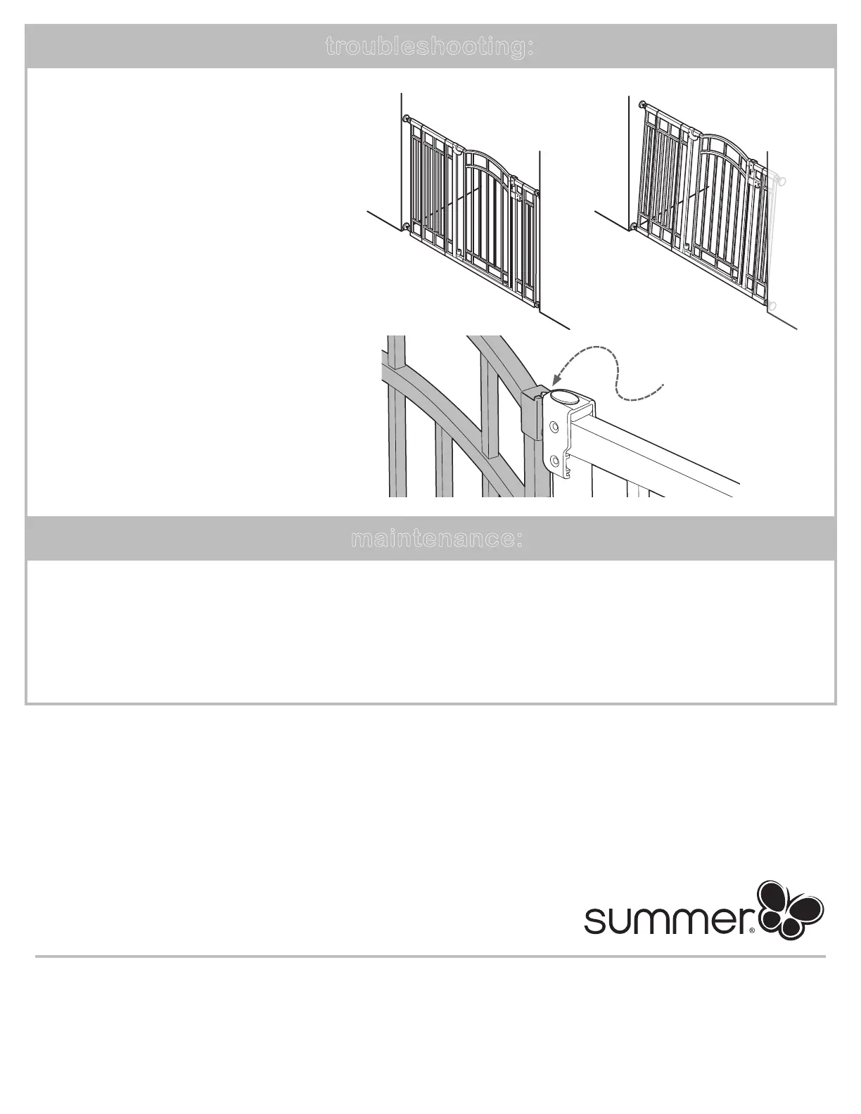 • Regularly check tension bolts to make sure the gate is securely in place.