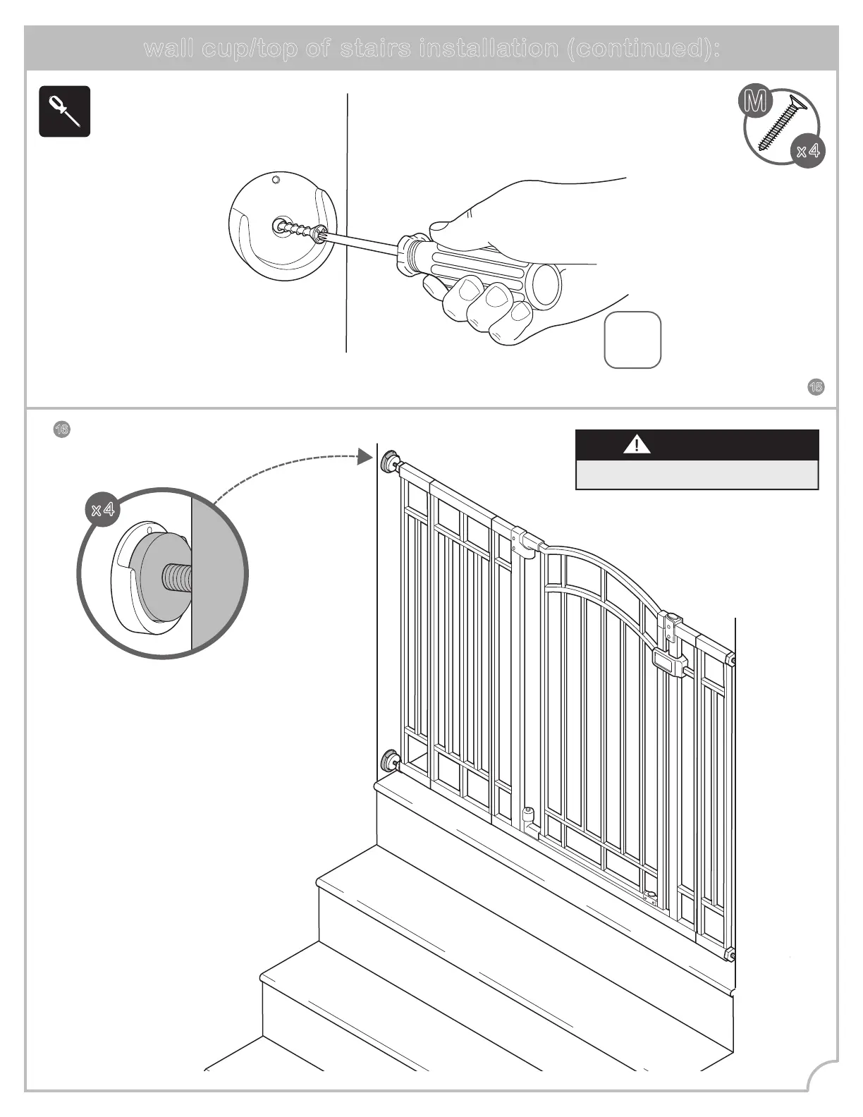 wall cup/top of stairs installation (continued):