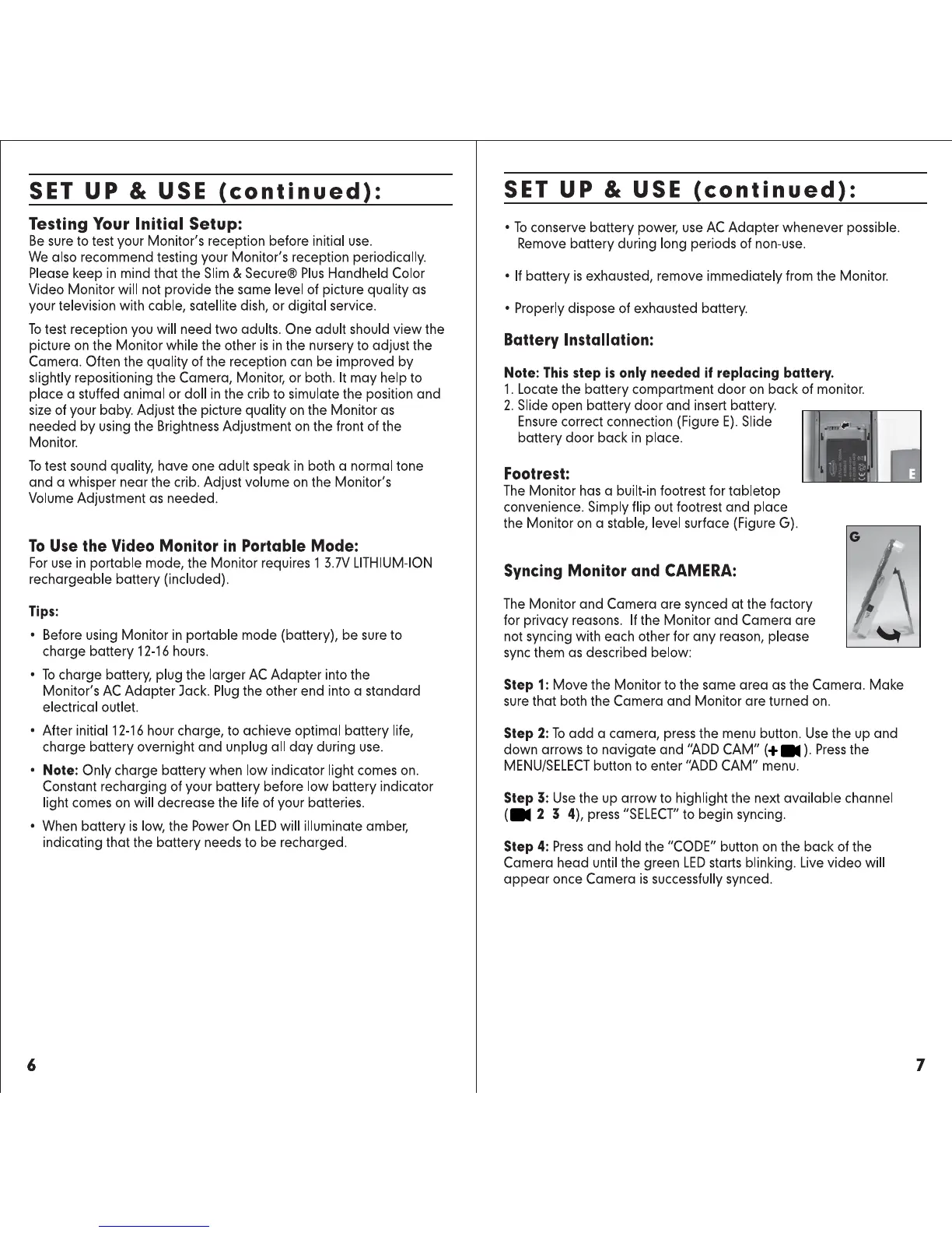 Summer 28450 - Monitor Setup and Syncing; Testing Initial Setup; Using Monitor in Portable Mode; Battery Conservation and Maintenance