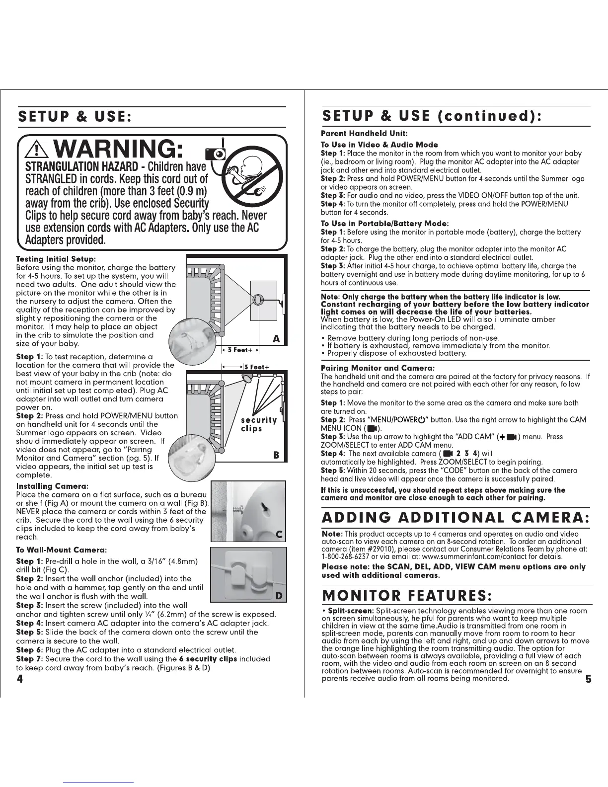 Summer 28980 - Setup and Use Guide; Initial Setup and Testing; Camera Installation; Wall-Mounting the Camera