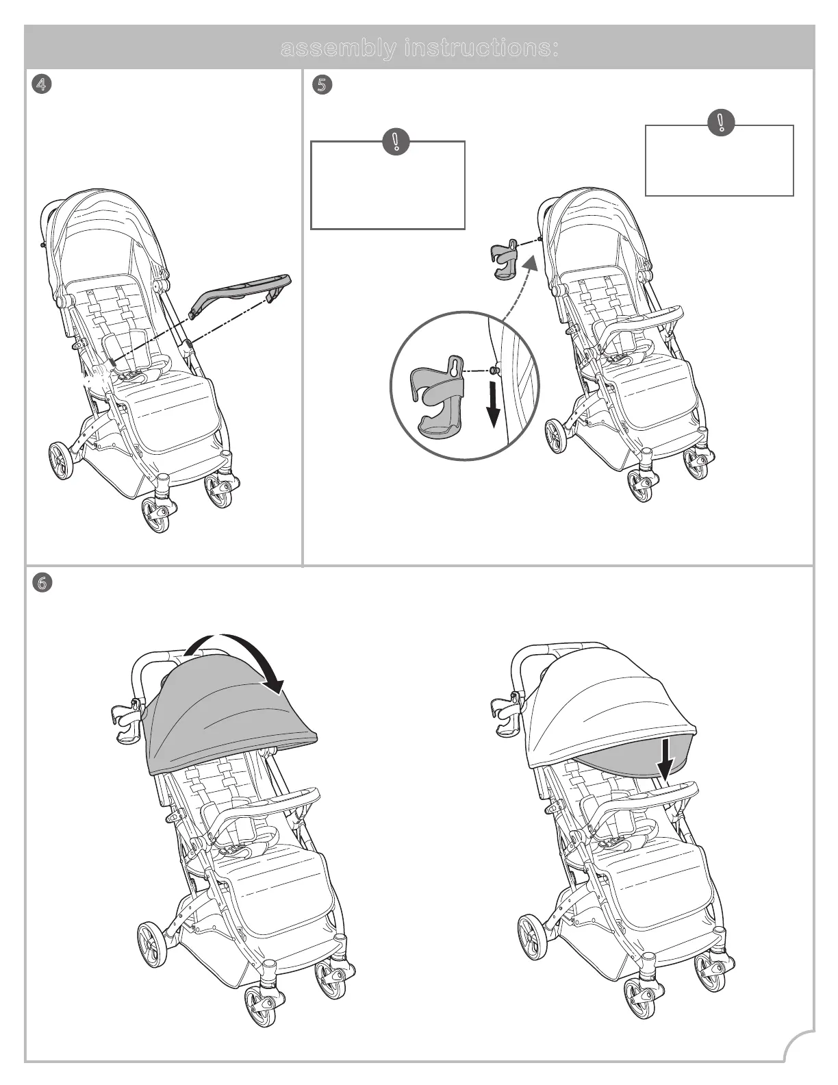 Extend canopy forward. Optional: Canopy extension is tucked beneath the canopy.