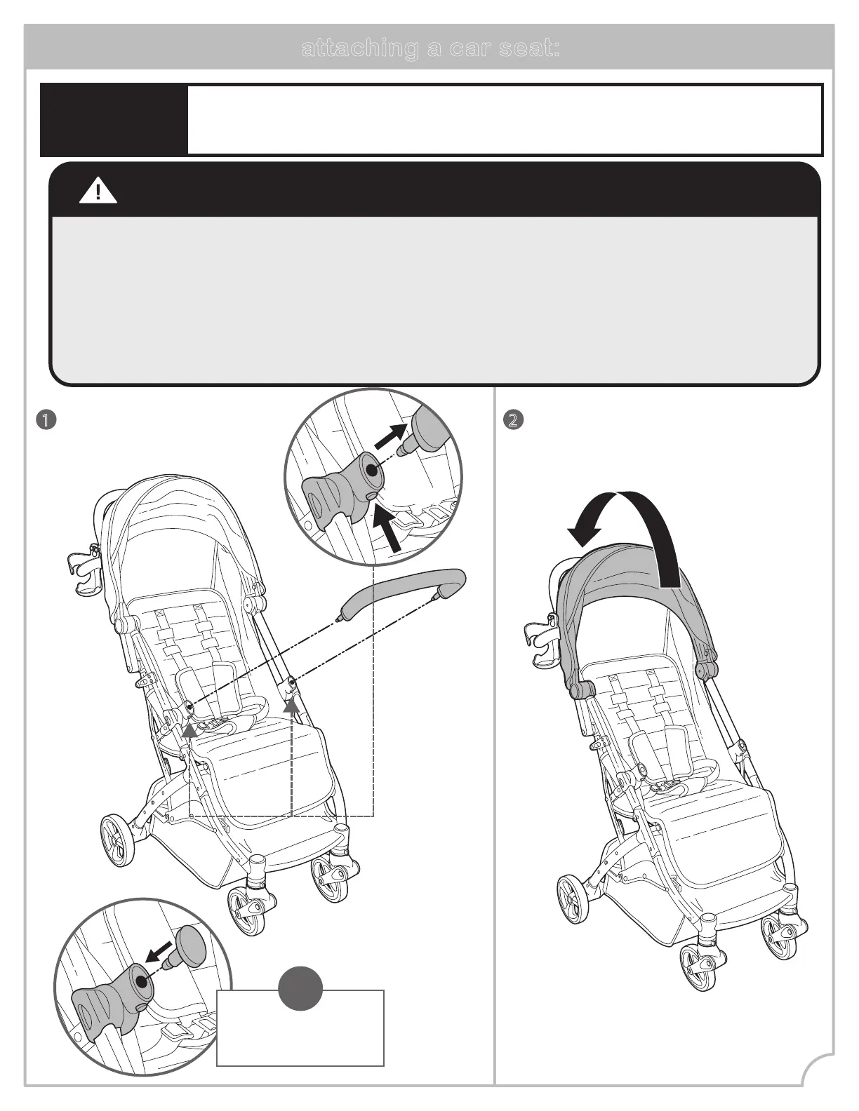 • NEVER install Infant Car Seat without fastening it securely to the stroller with the provided car seat straps.