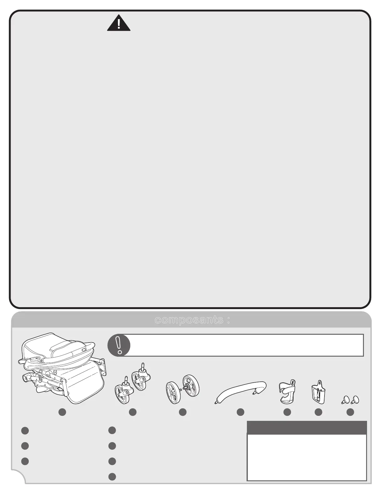 • Ne pas utiliser la poussette si elle est endommagée ou si des pièces sont manquantes.