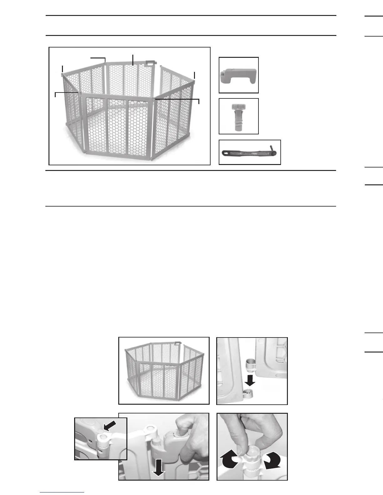 Paso 1: Para instalar un área de juego con 6 paneles, despliegue los paneles a fin
