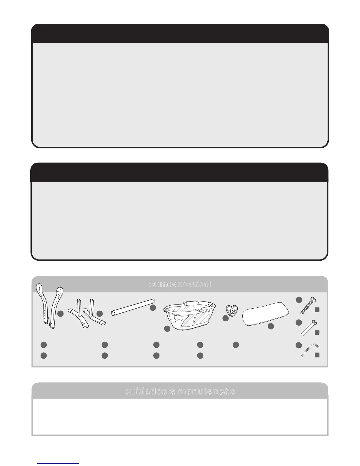 • Estrutura: Limpar regularmente com uma mistura de detergente/sabão suave e água e um pano húmido. Enxugar sem esfregar com uma