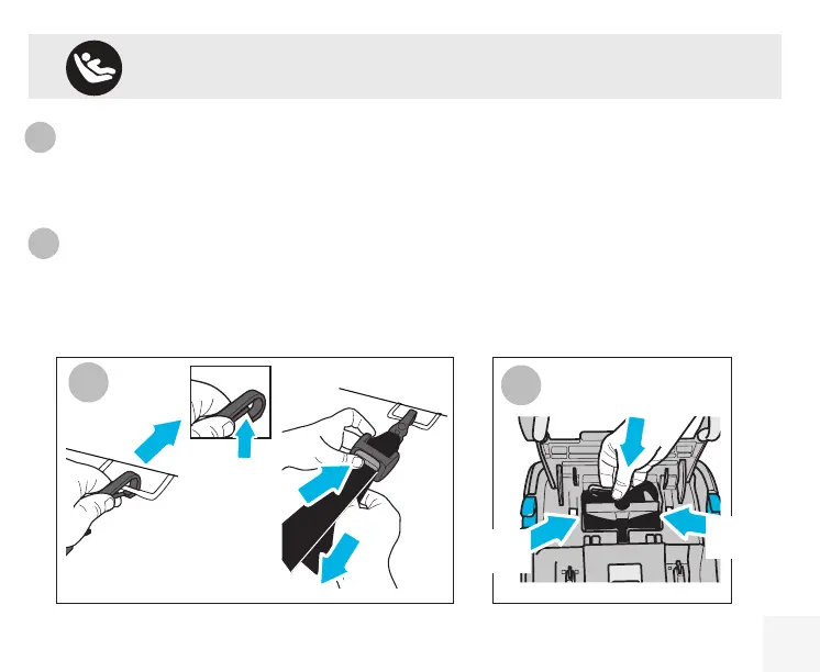 by pushing the LATCH strap adjustment button and pulling on the strap. Repeat on other