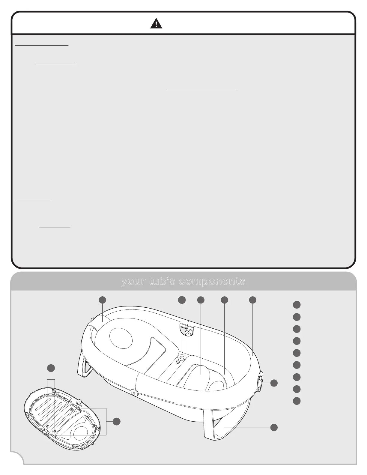 • Always check legs of tub to assure that they are securely locked in place prior to placing child in tub.