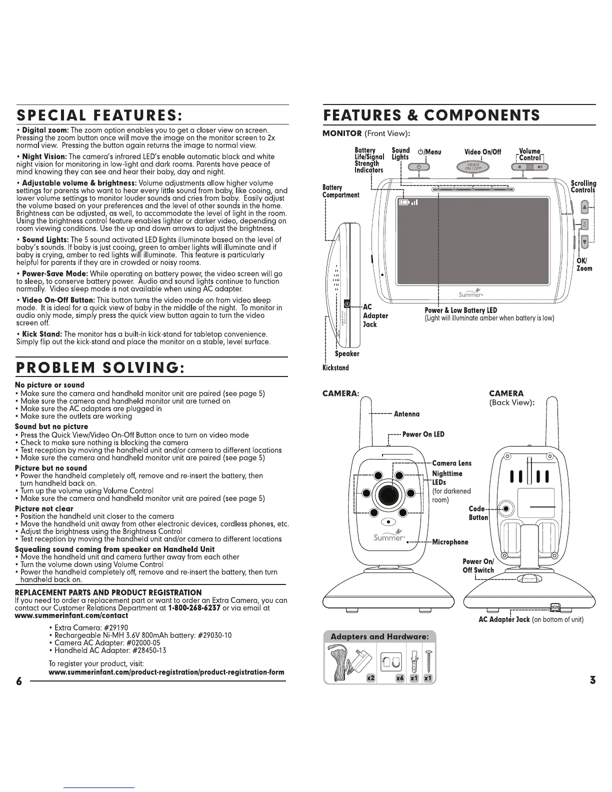 Summer InView 28650 - Product Features and Components; Special Features Overview; Troubleshooting Common Issues; Monitor and Camera Components