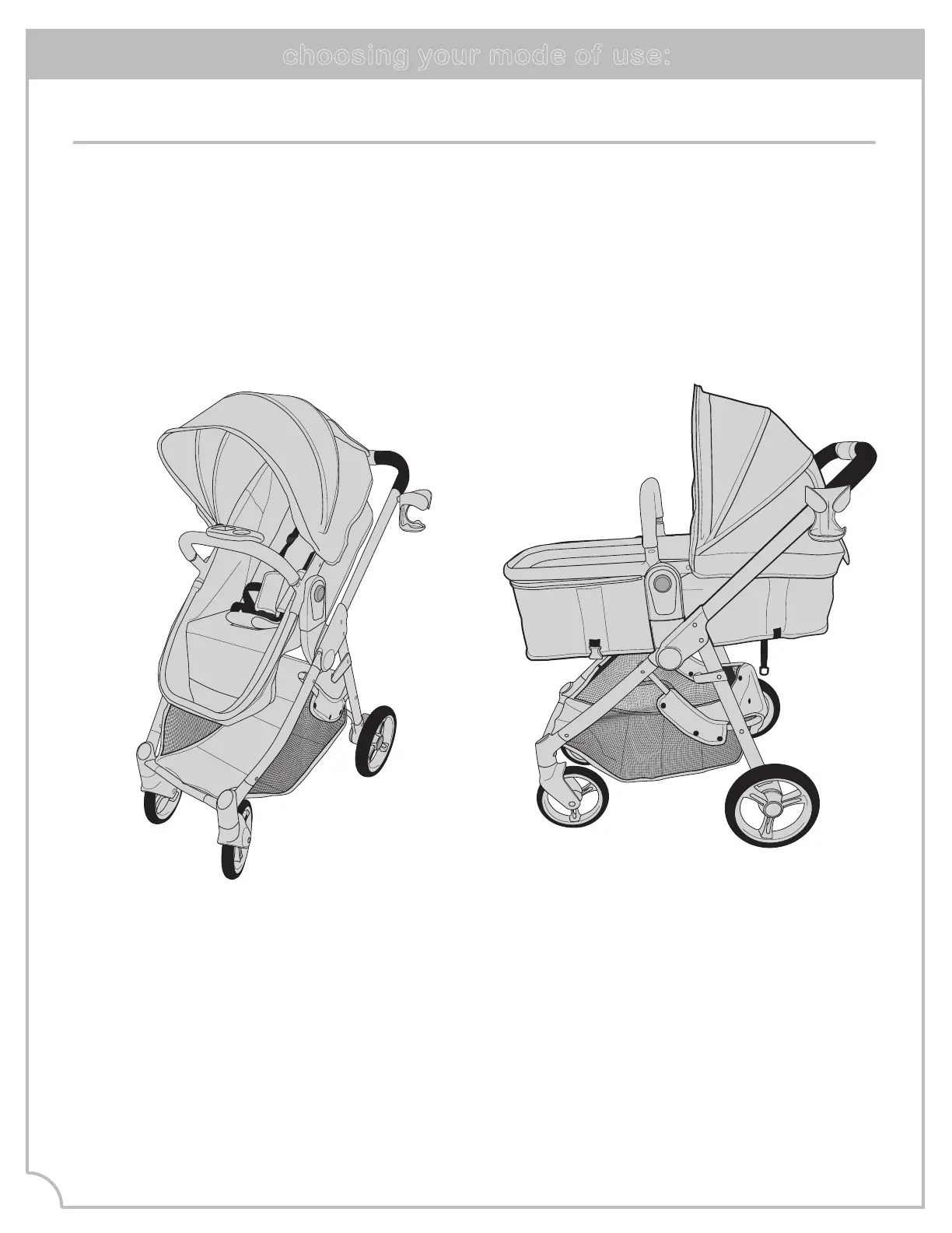 Your stroller seat can be used in two different modes.