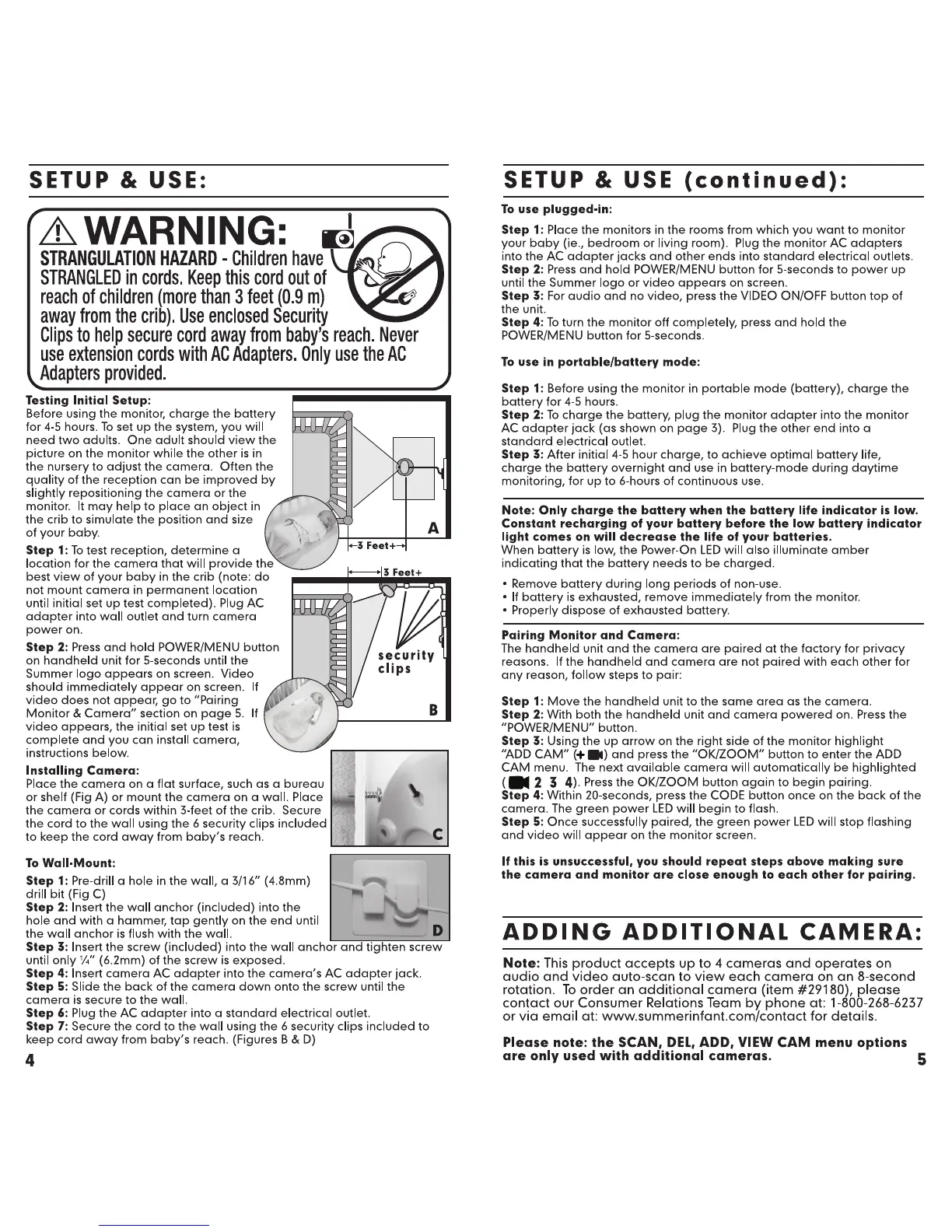 Summer WIDEVIEW 29000 - Setup and Operation; Initial Setup and Testing; Camera Installation and Mounting; Monitor Usage and Pairing