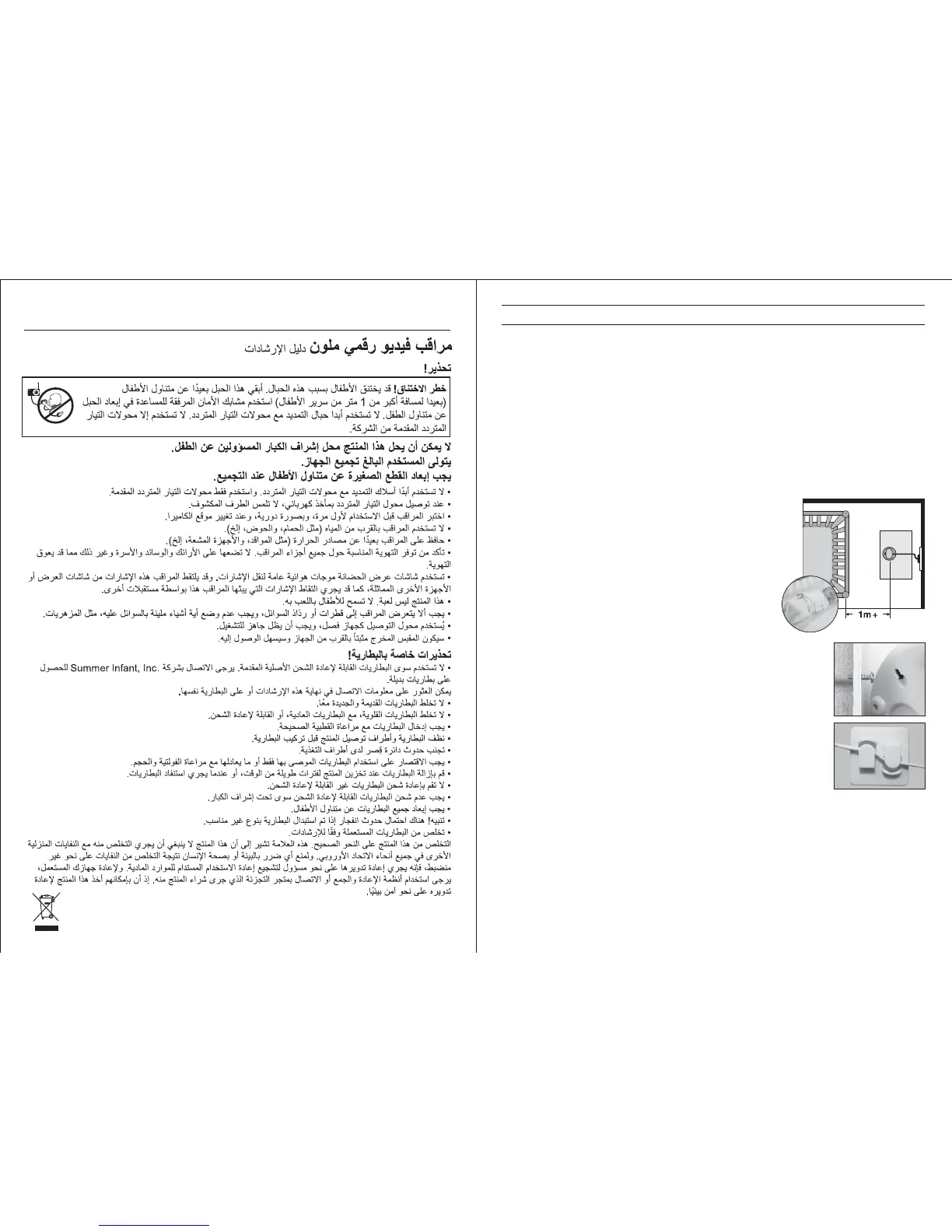 Ne JAMAIS placer l'unité Bébé ni le cordon à moins d'un mètre du lit de