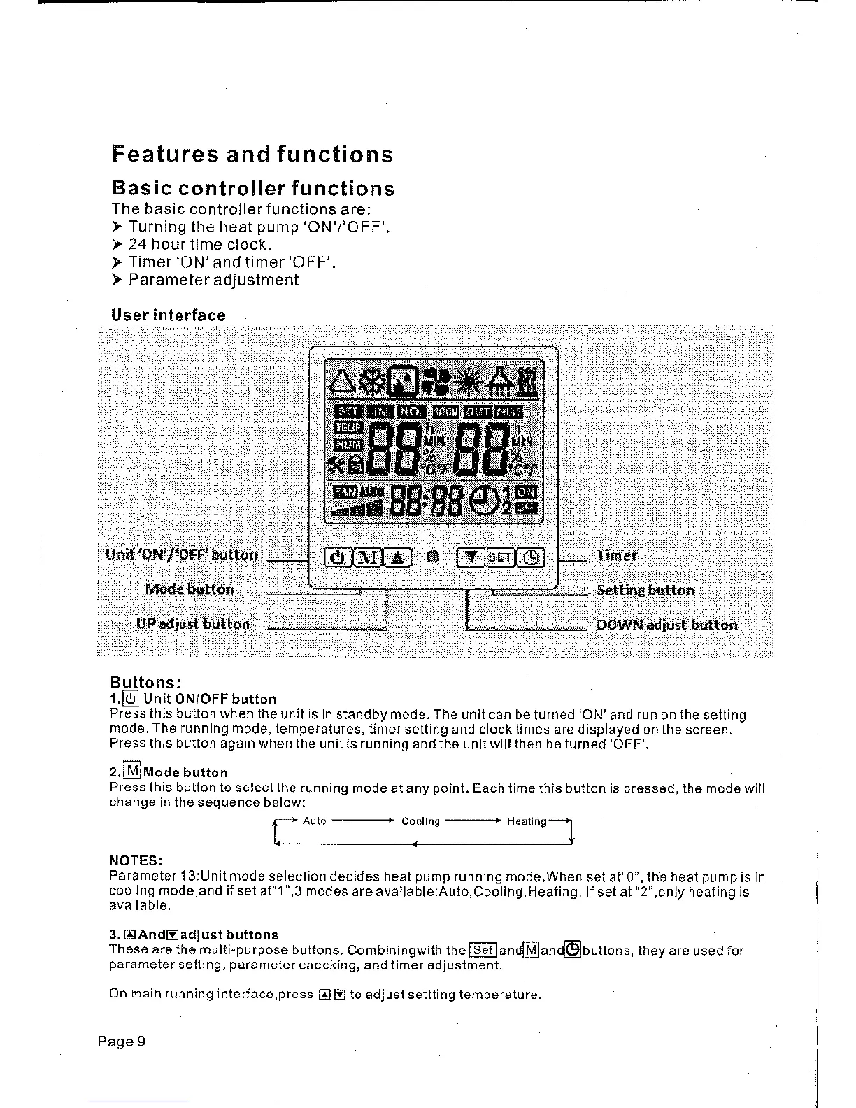 SummerWave 70 - Features and Functions; Basic Controller Functions; User Interface; Buttons
