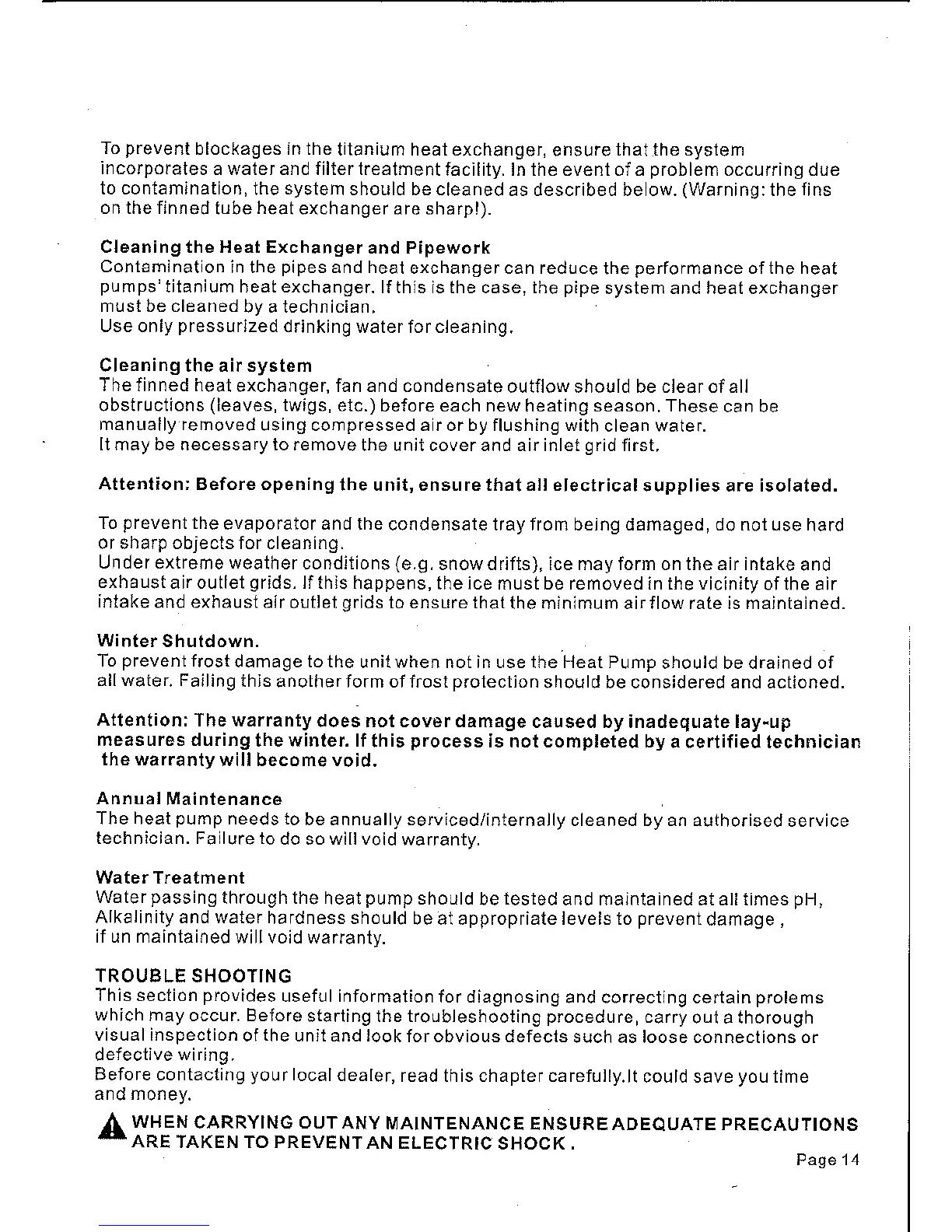 SummerWave 70 - Cleaning the Heat Exchanger and Pipework; Cleaning the Air System; Winter Shutdown; Annual Maintenance