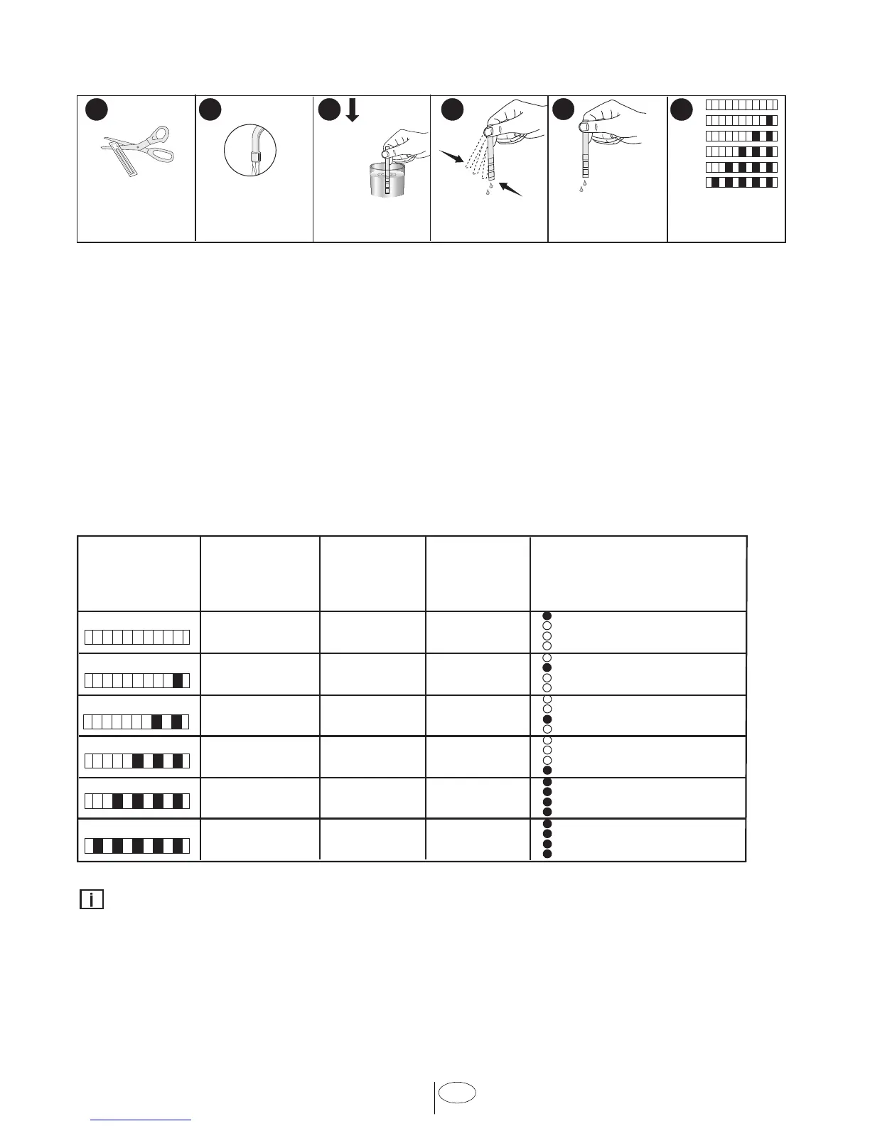 the test strip with the degrees of Hardness Table). The appropriate program follows up lights
