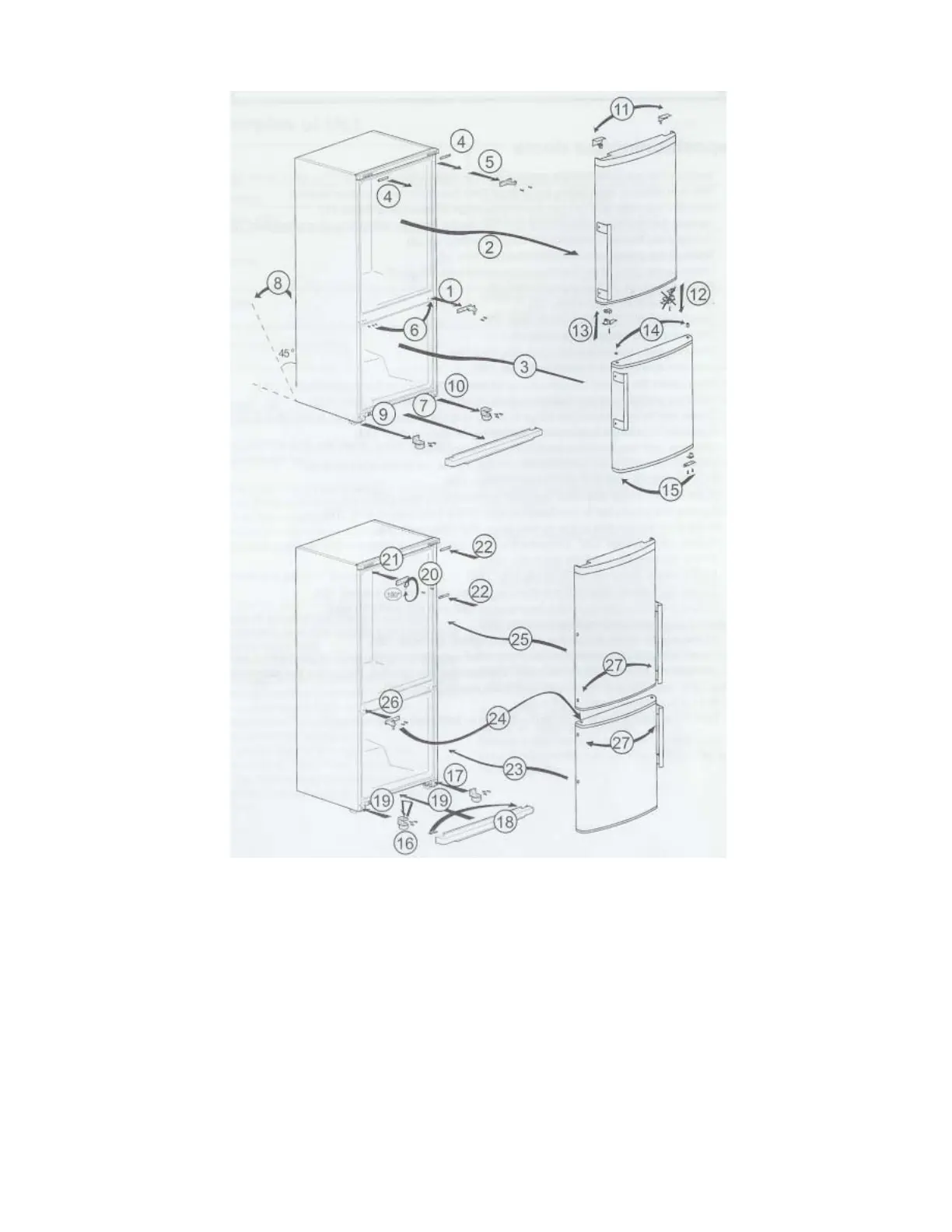 19. Fit the bottom hinge and other feet, and tighten the screws. (17)