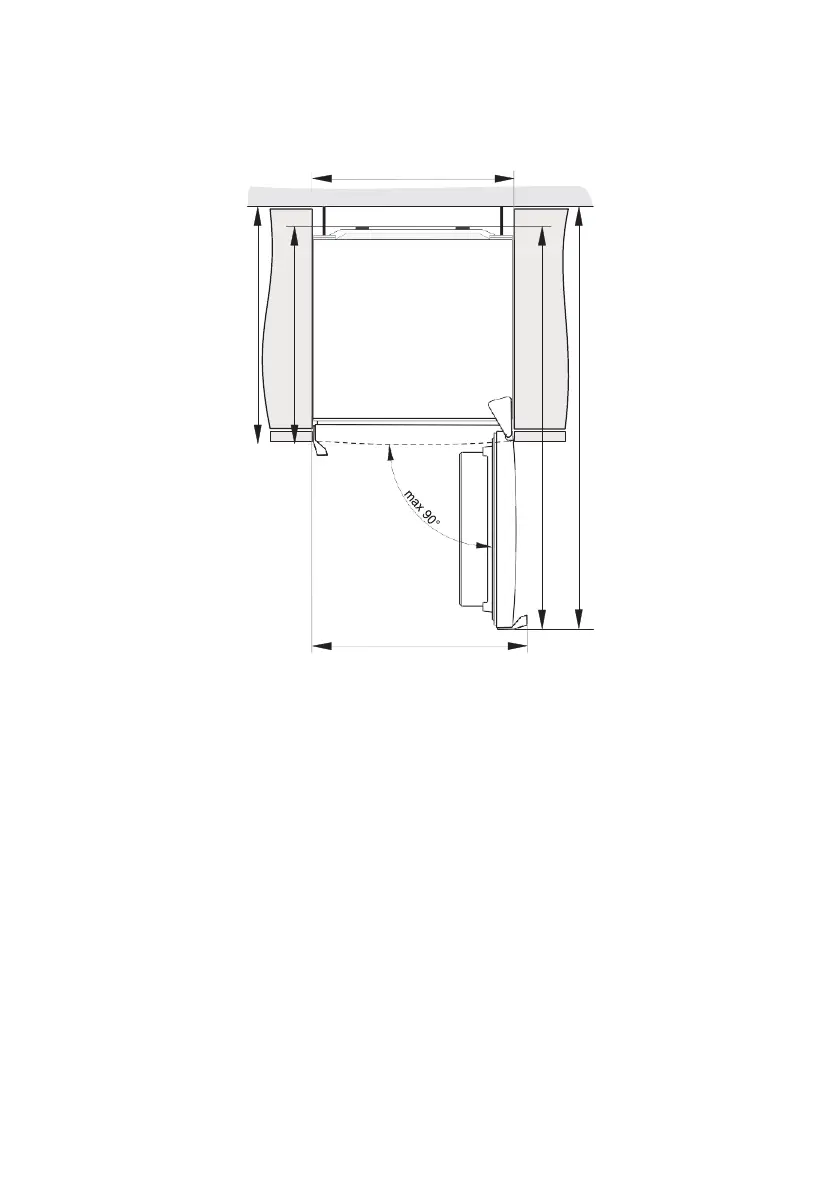 ouvrir complètement la porte afin de permettre de tirer les tiroirs et les étagères (voir le schéma