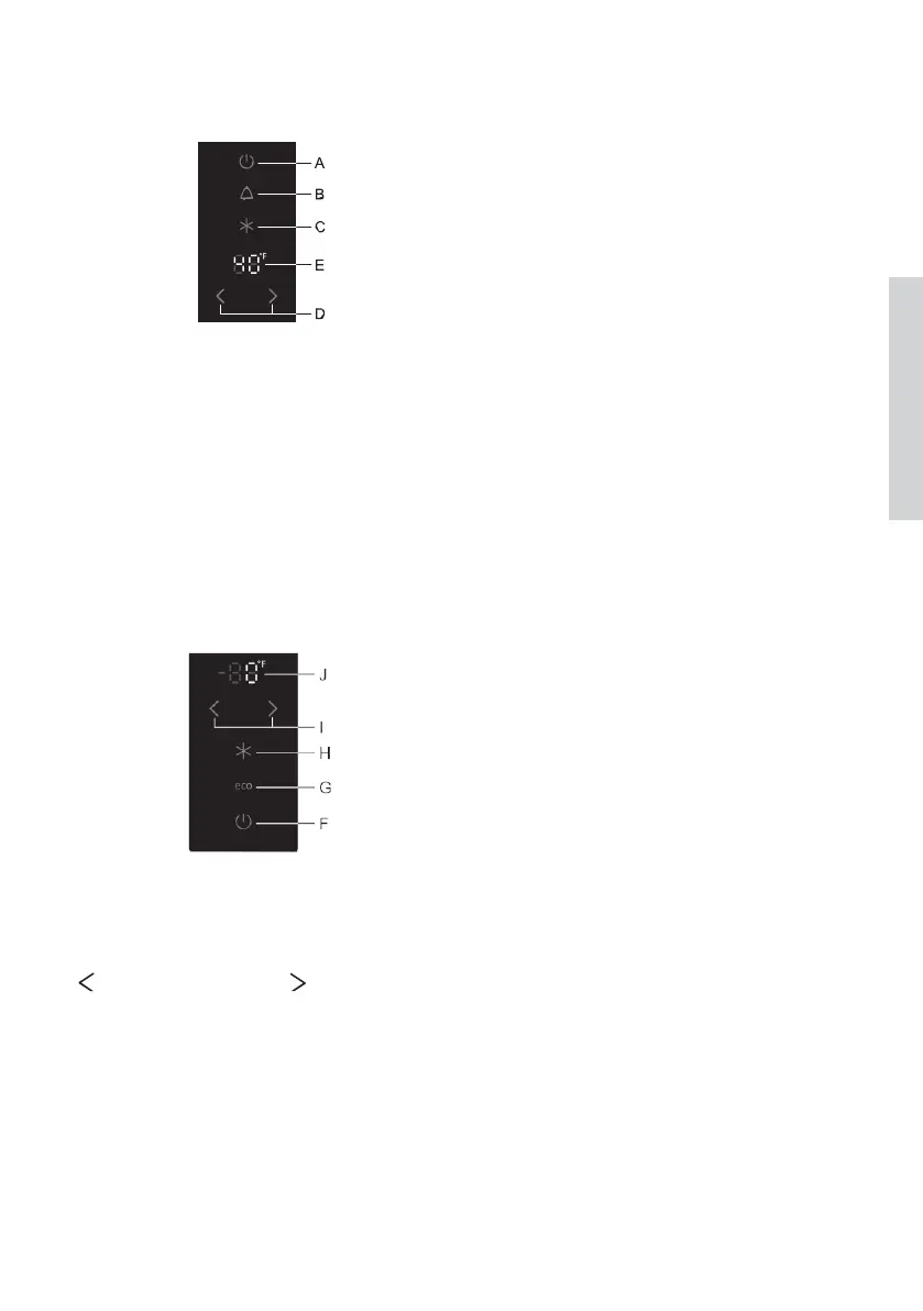 Pour régler la température dans le réfrigérateur, utilisez les touches D