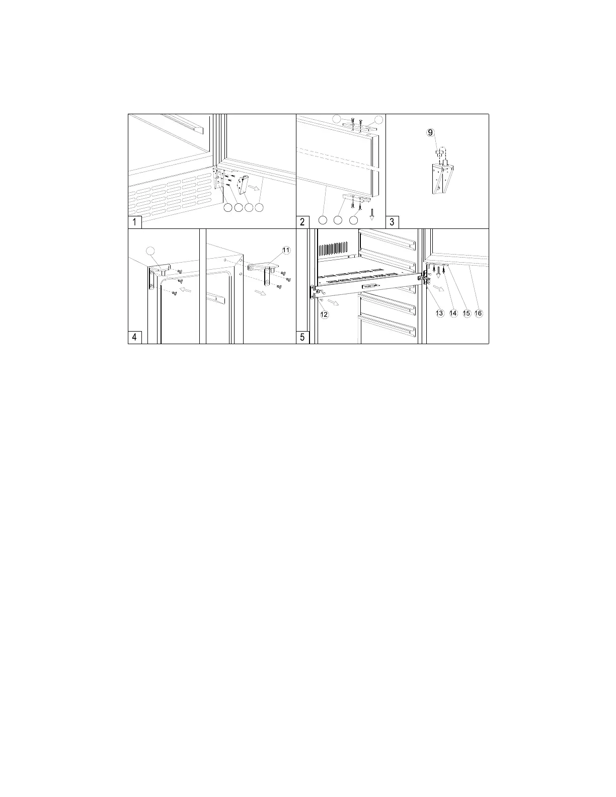 door.At the same time unscrew and transfer door stopper (9) of the bottom hinge to the opposite side.