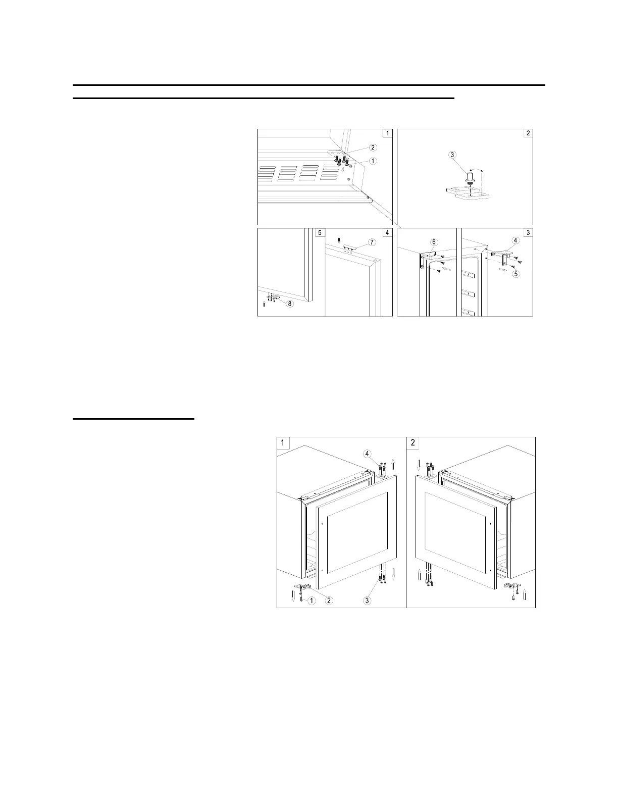 5. Screw the alternative left top hinge (6), included in the fittings, on the left-hand side of cabinet.