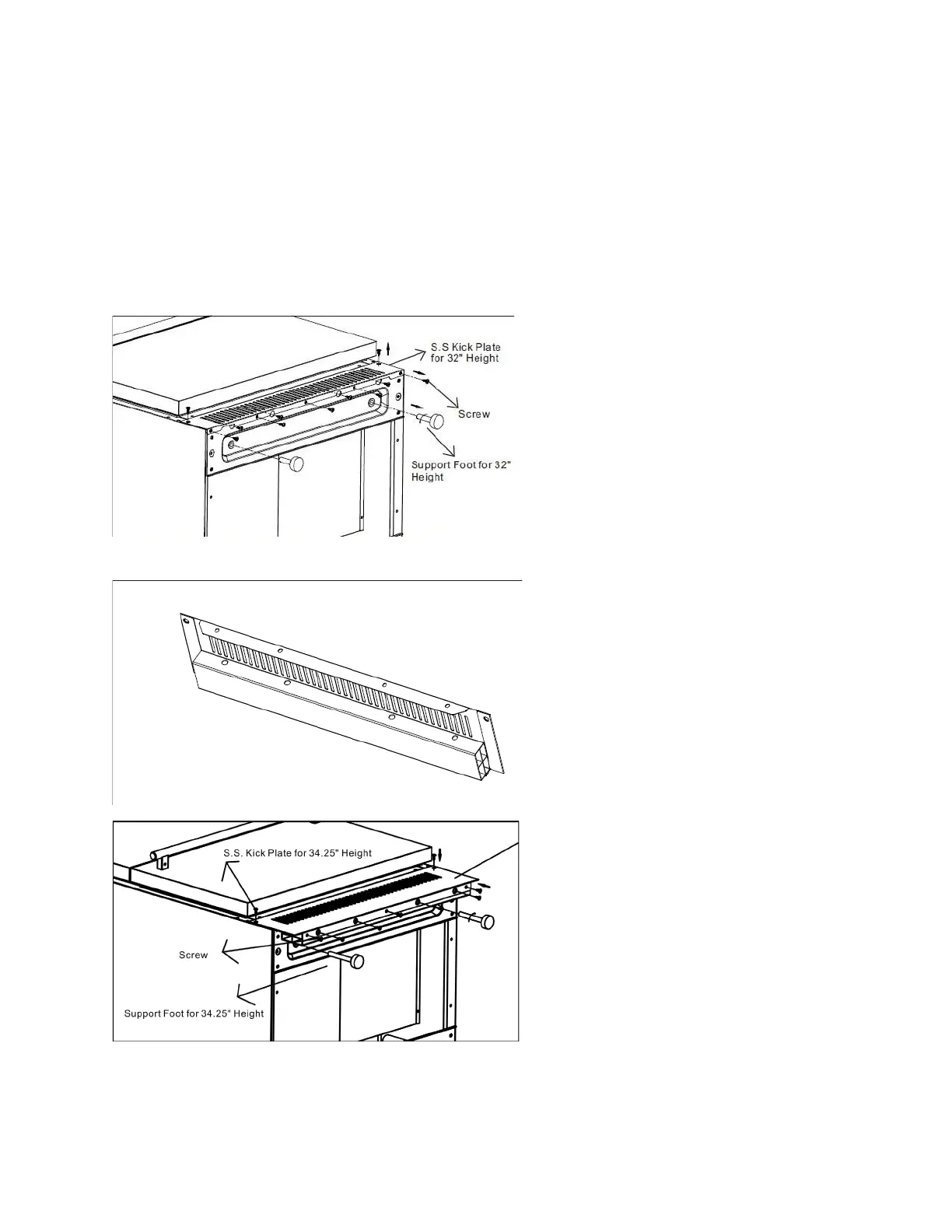 must be installed. To install kick plate for 34.25” height, please follow the instructions below: