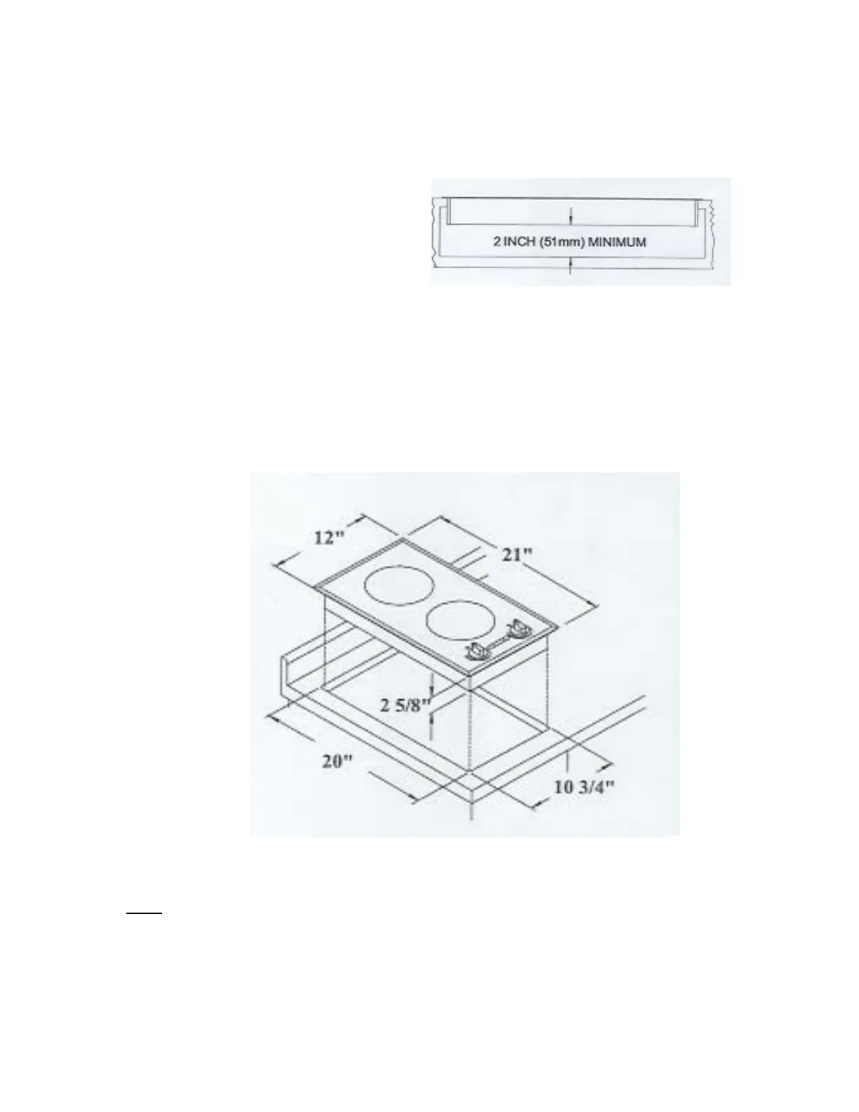 Allow a 2" minimum clearance between the bottom of the metal pan of the cook