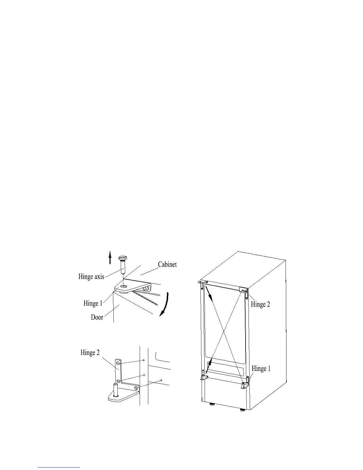 4. Align the door on Bottom Hinge 1 and replace axis on Hinge 2. Tighten it firmly.
