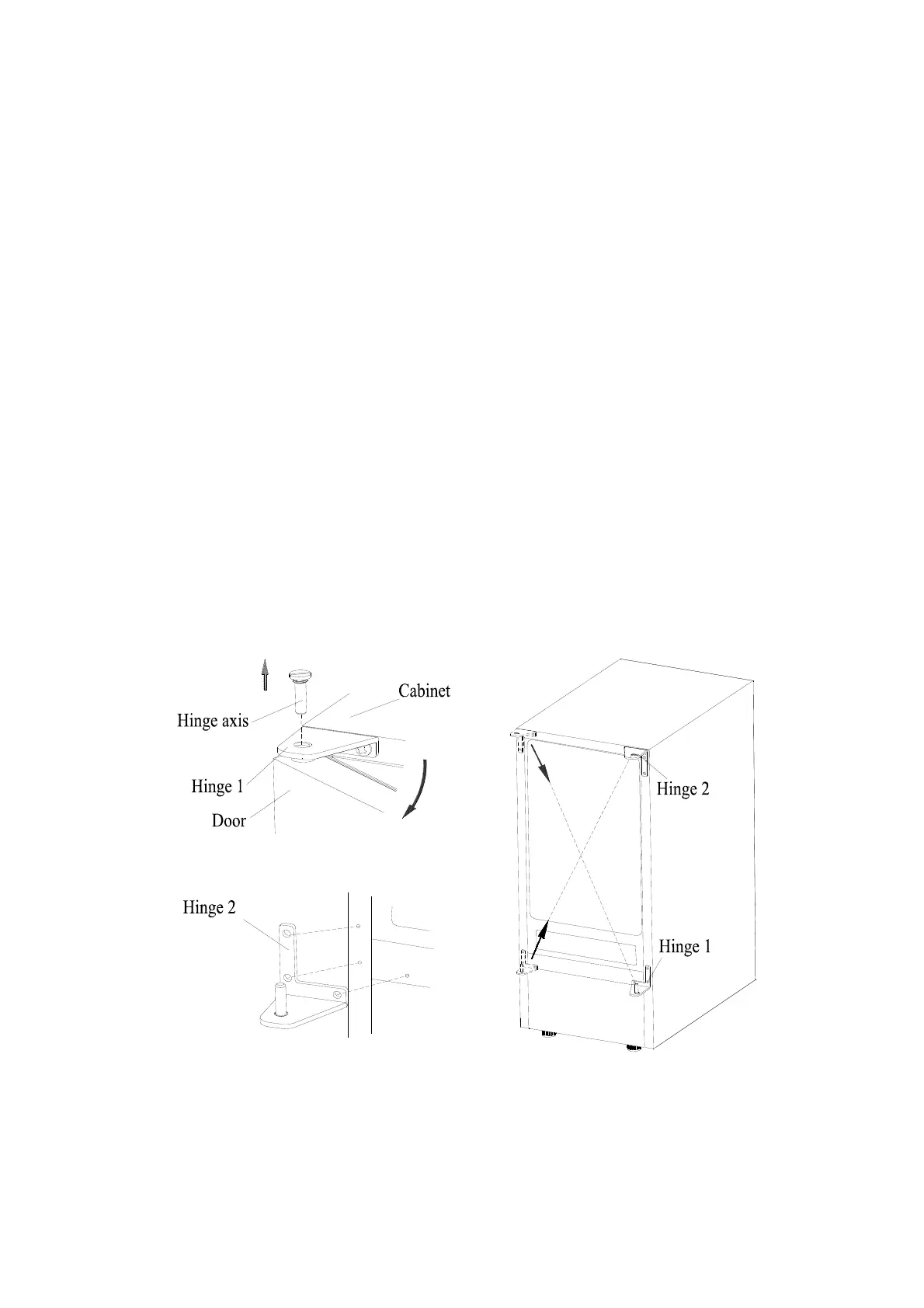 4. Align the door on Bottom Hinge 1 and replace axis on Hinge 2. Tighten it firmly.