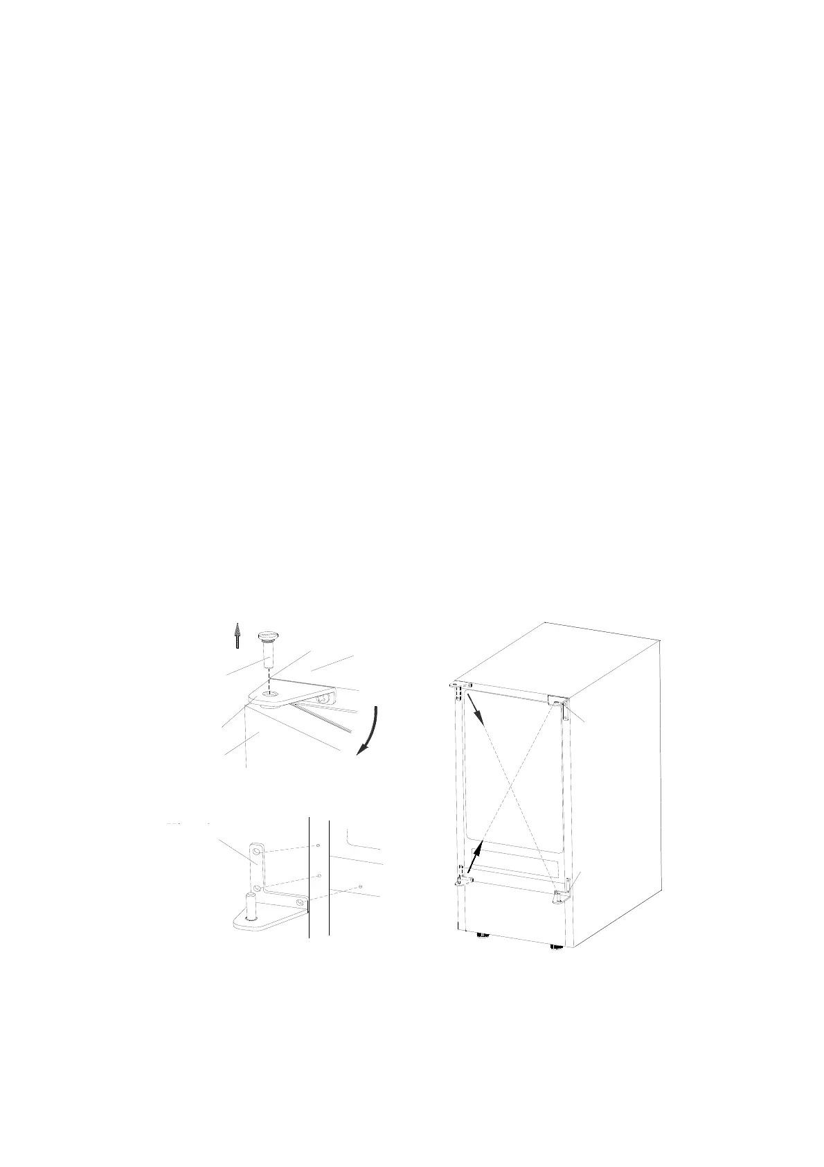 4. Alinear la puerta en la bisagra inferior 1 y reemplazar el eje en la bisagra 2. Apriete