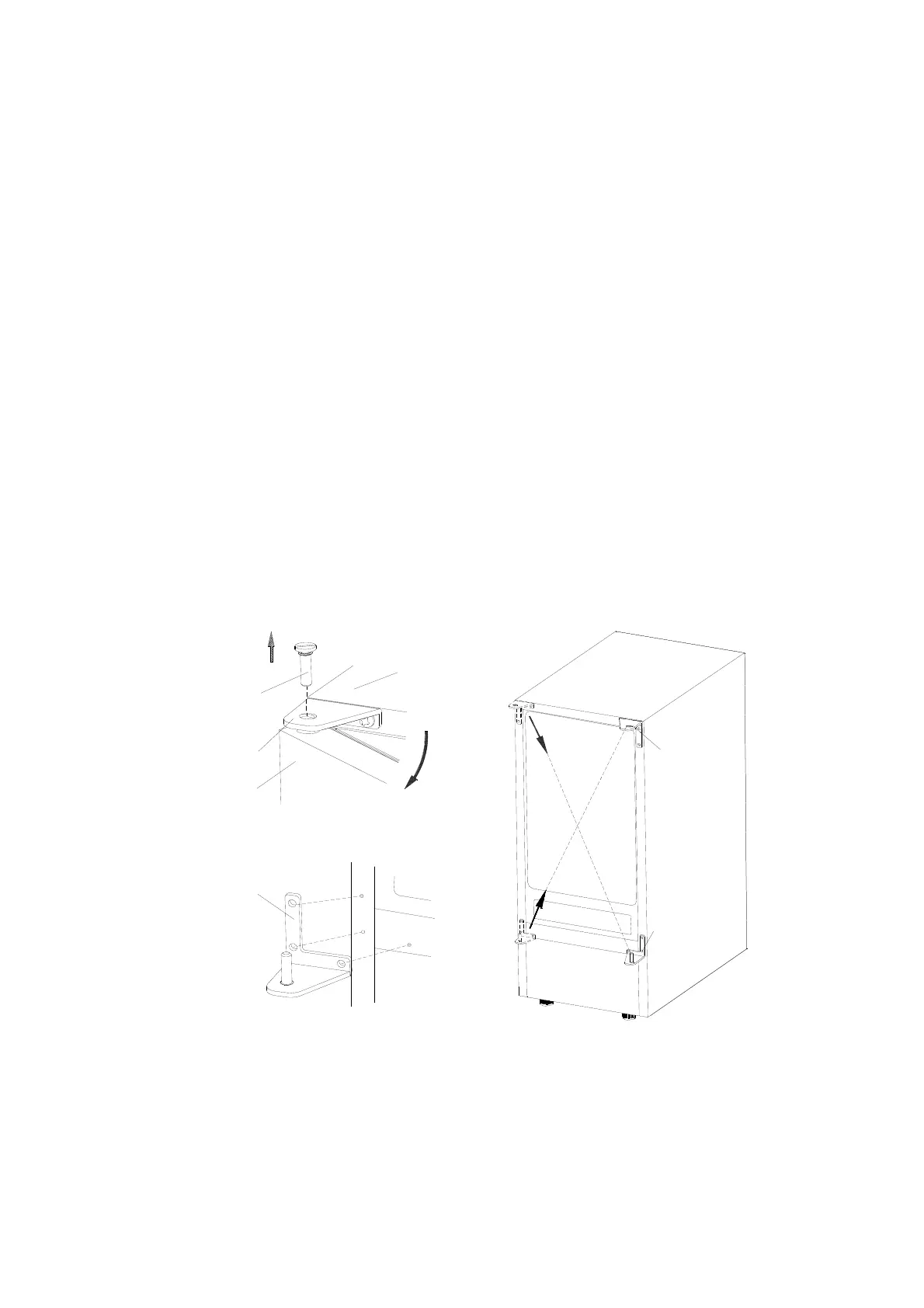 4. Alignez la porte sur la charnière inférieure 1 et remplacer l'axe sur charnière 2. Serrez