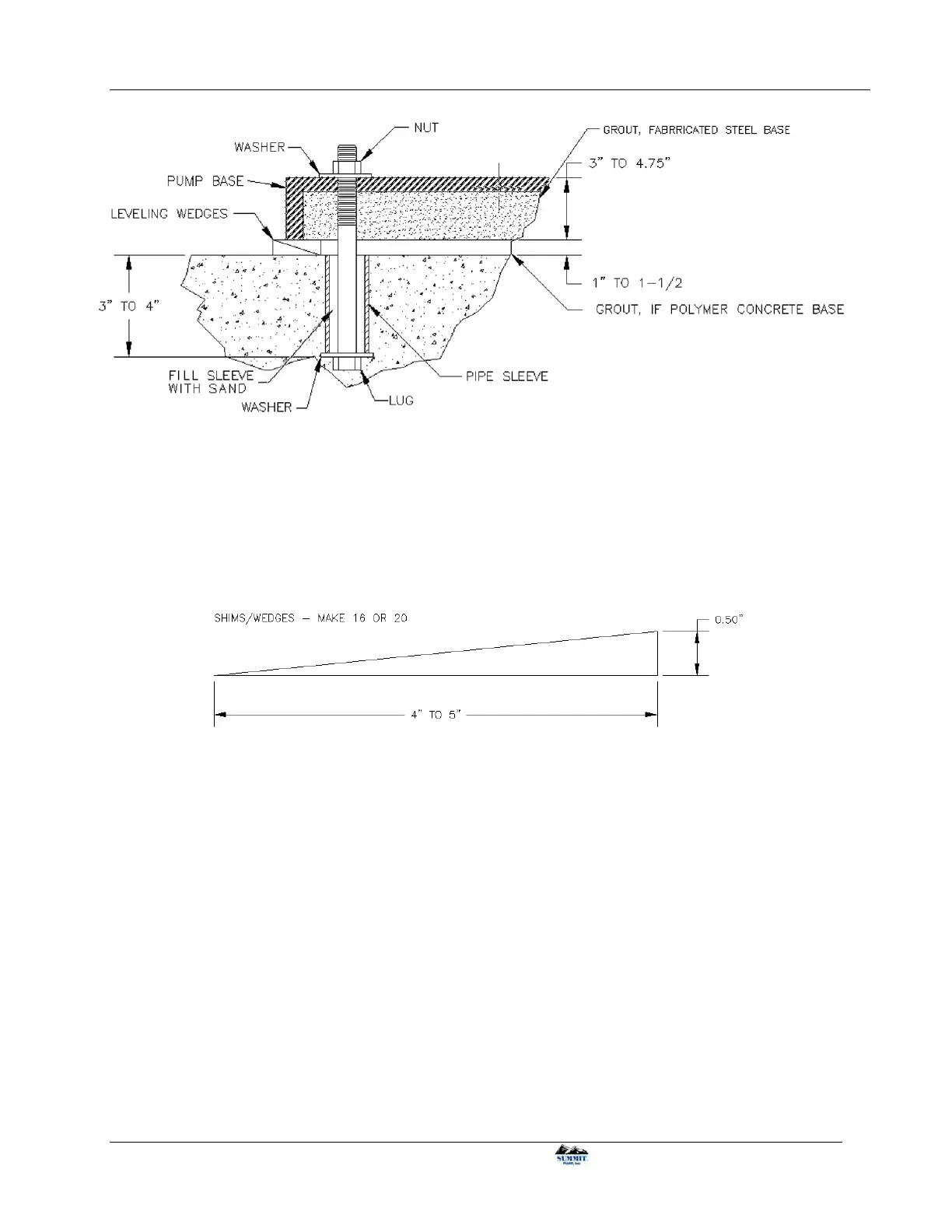 to obtain desired gap between baseplate and sub-base. Normal gap is 1” to 1-1/2”.