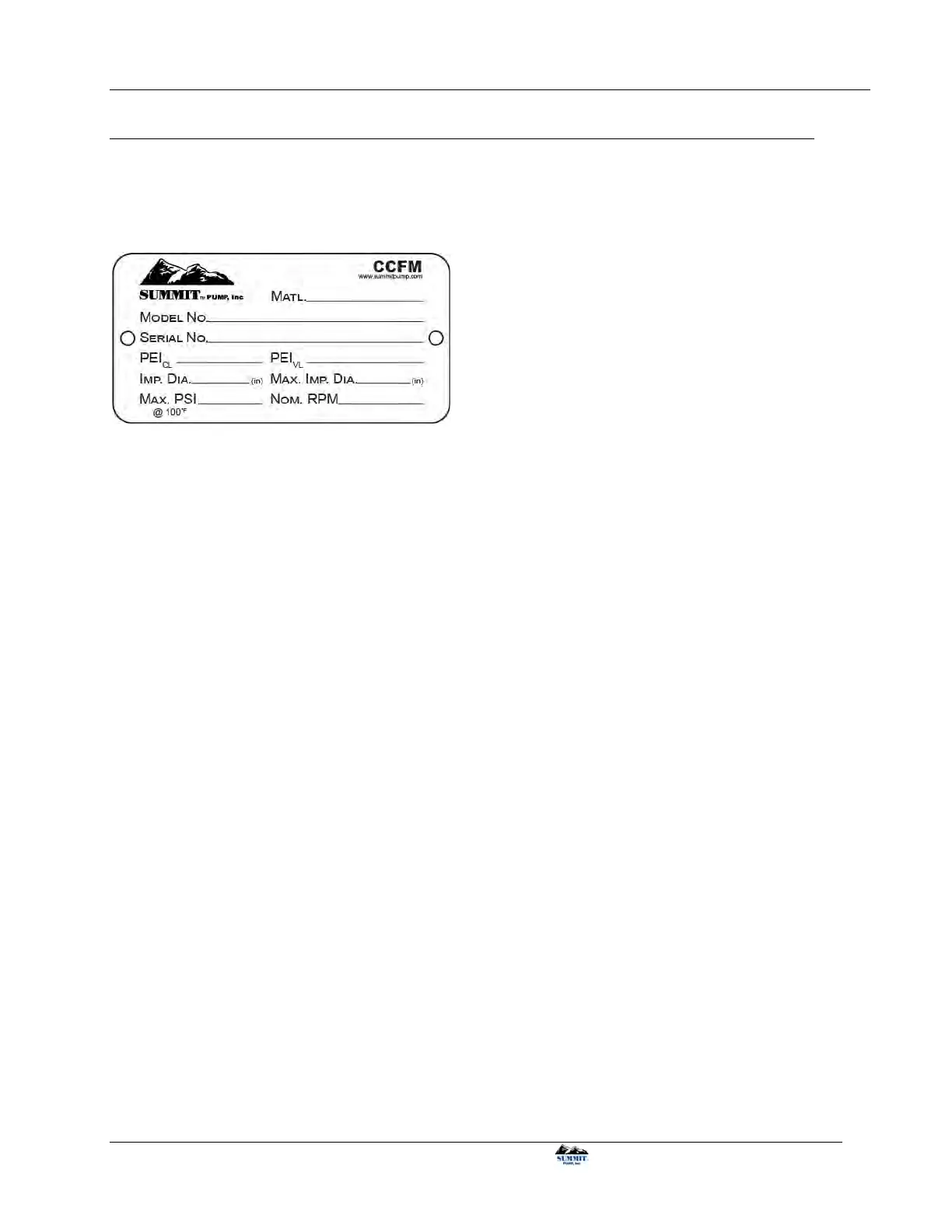 Summit CCFM pumps are defined by their Model No., which is the basic model number that