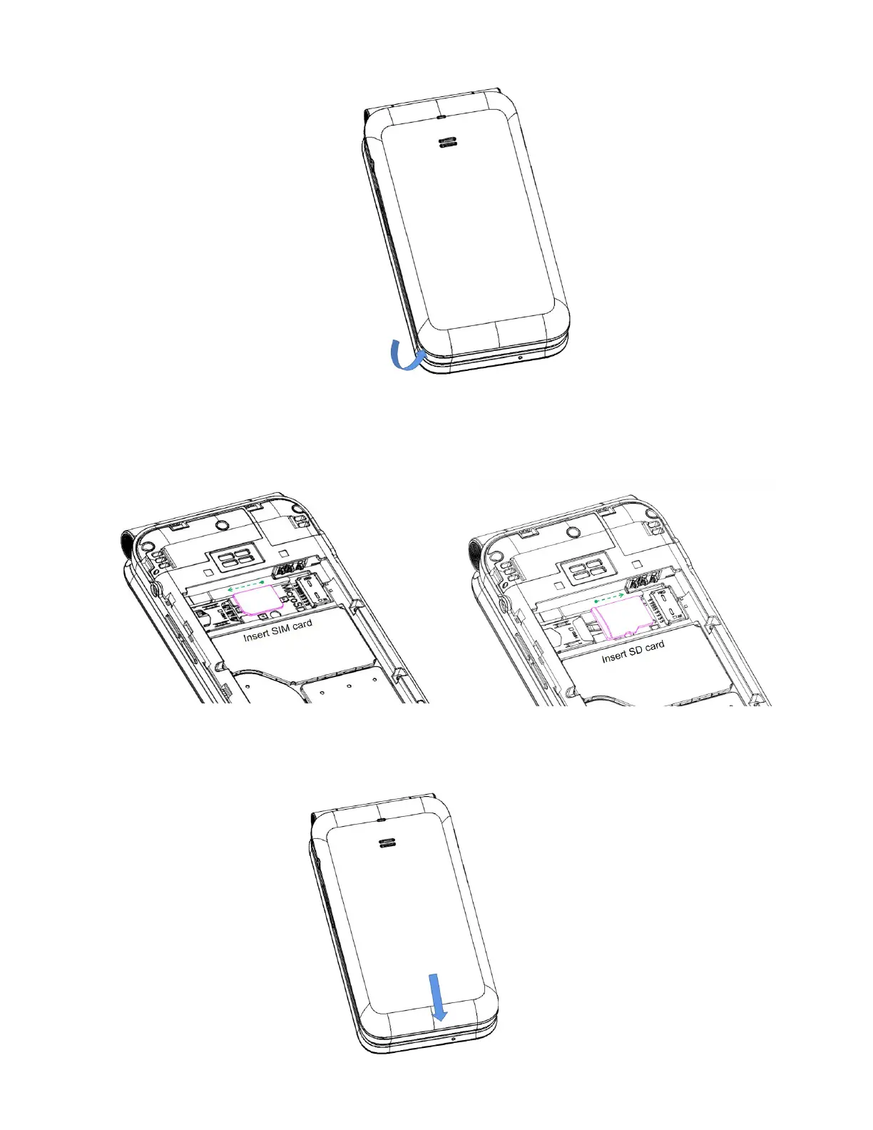 Slide the SIM card to the SIM card slot with the gold contacts facing down. If you have an SD card