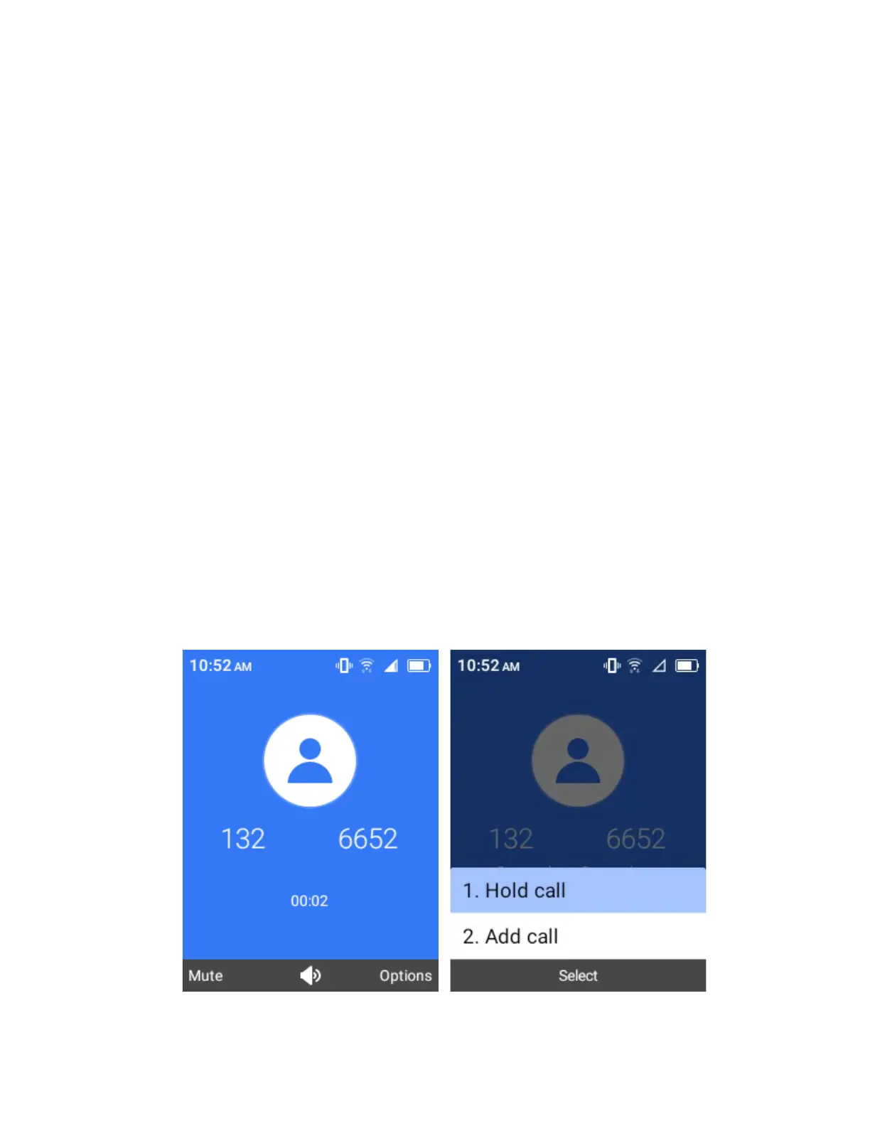 Mute: Mute the microphone during an active call. Select again to unmute the microphone.
